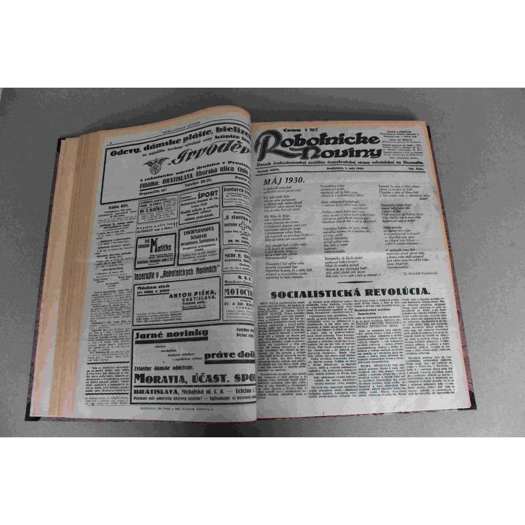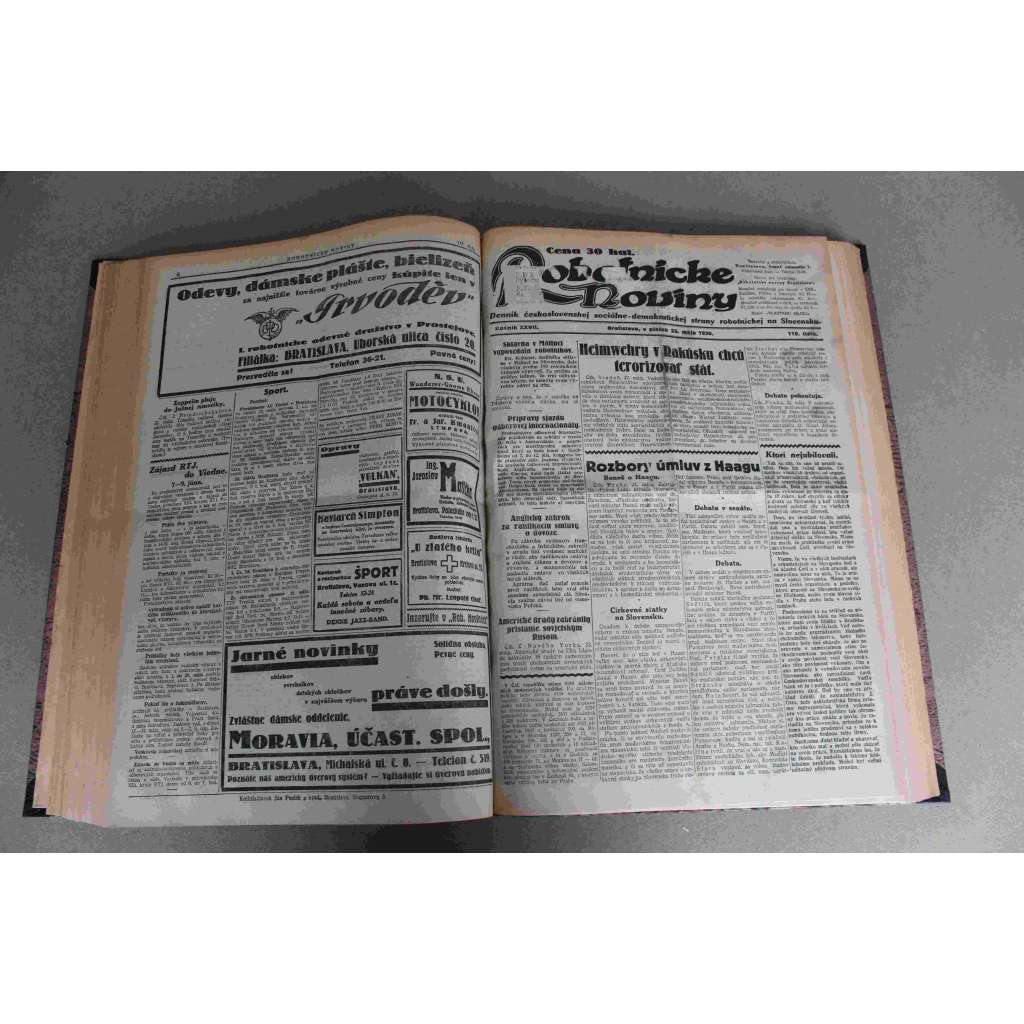 Robotnické noviny 1930, roč. XXVII. (duben-červen) (noviny, deník, první republika, Slovensko, mj. Robotníctvo ide so sociálnou demokarciou, Tuka za peniaze z Maďarska pracoval proti Čsl. republice, Boj o mier, Spor Anglie s Vatikánom)