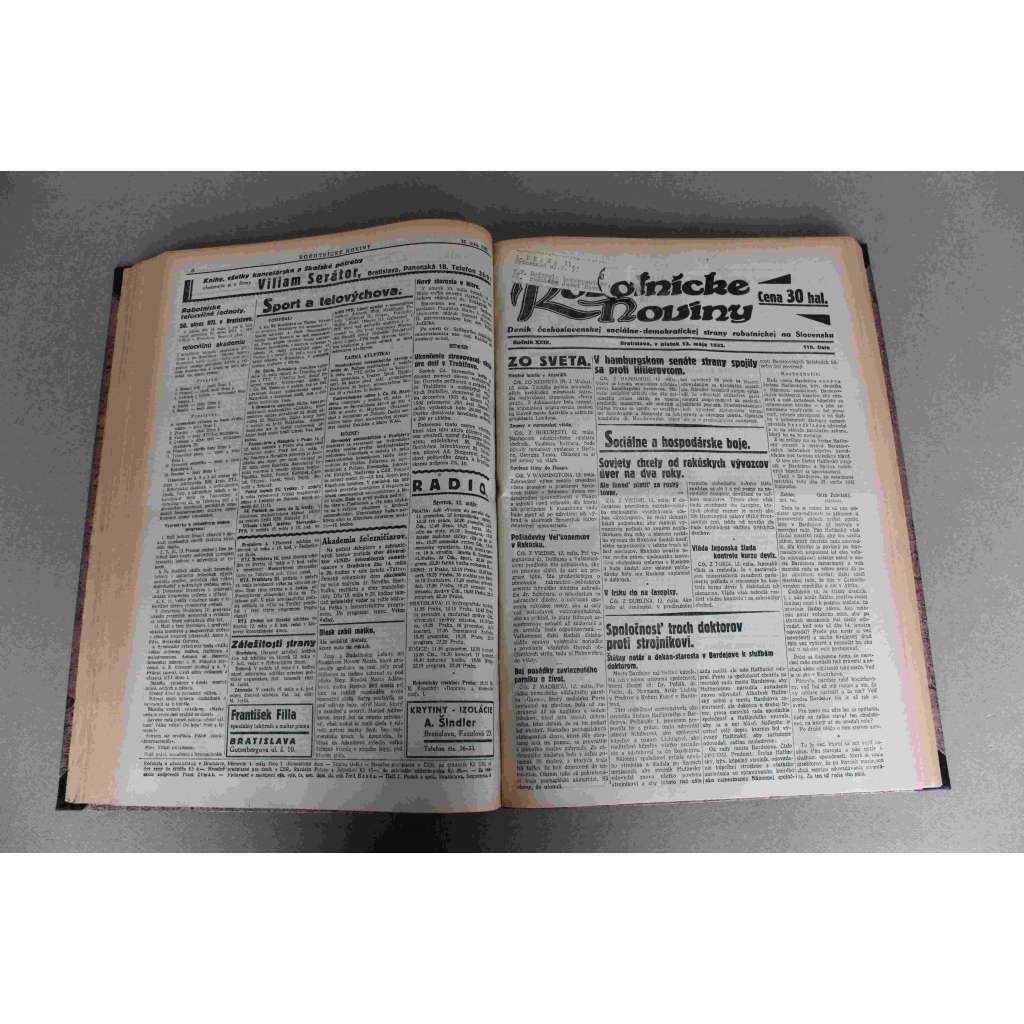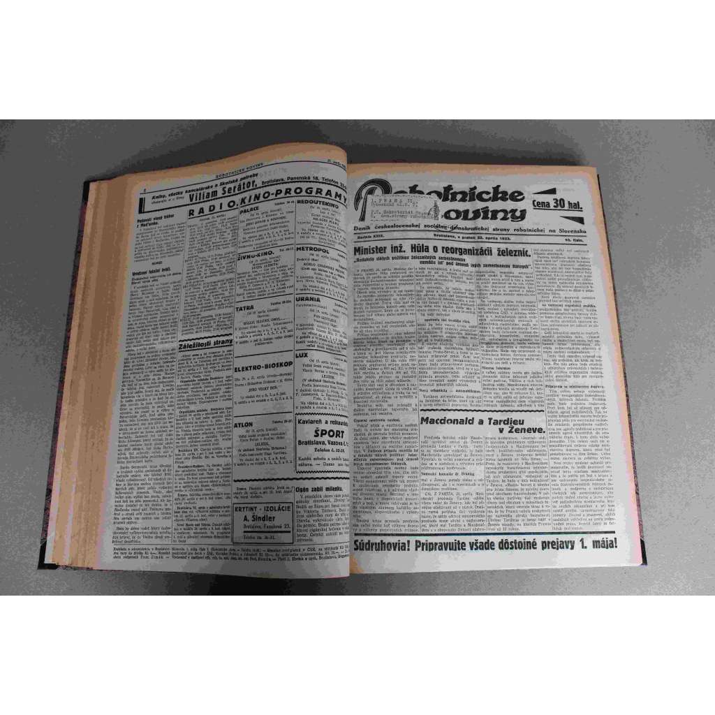 Robotnické noviny 1932, roč. XXIX. (duben-červen) (noviny, deník, první republika, Slovensko, mj. Ivan Dérer, Hindenburg zase prezidentom Nemecka [Hitler], Na Mostecku tekla krv, Májový sviatok Práce, Boje o autonomiu v Katalánsku)