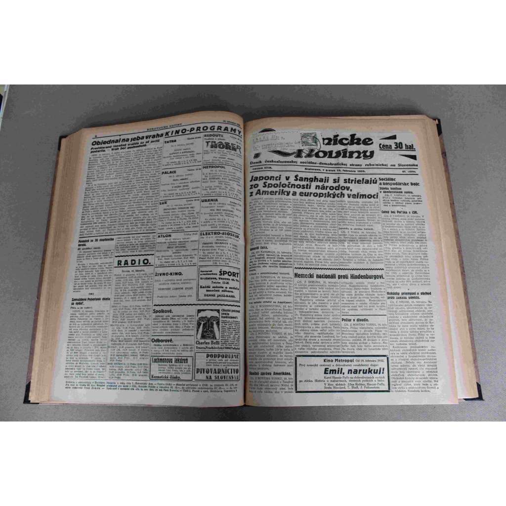 Robotnické noviny 1932, roč. XXIX. (leden-březen) (noviny, deník, první republika, Slovensko, mj. Výhlady do budúcna, Proces Stříbrný - Sichrovský, Baťa postaví fabriku tiež v Anglii, Japonsko dobýva pustiny, Volby Nemecko - Hindenburg [Hitler])