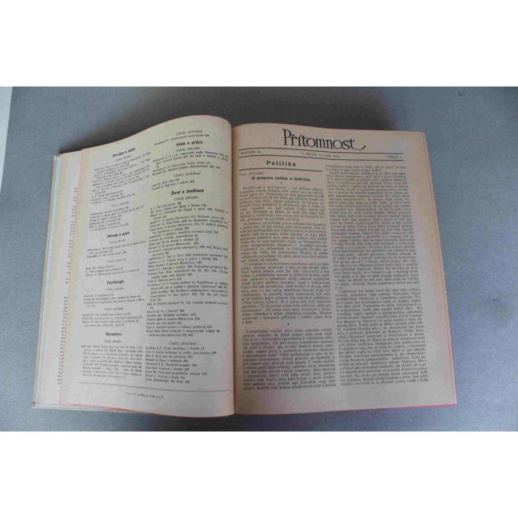 Přítomnost 1925, roč. II. (časopis, týdeník, první republika, mj. K. Engliš - O definici sociální politiky; K. Čapek - Proletářské umění, J. Čapek - Malování Václava Špály; F. Peroutka - Sladko je vládnouti, Proč vznikla Pětka)