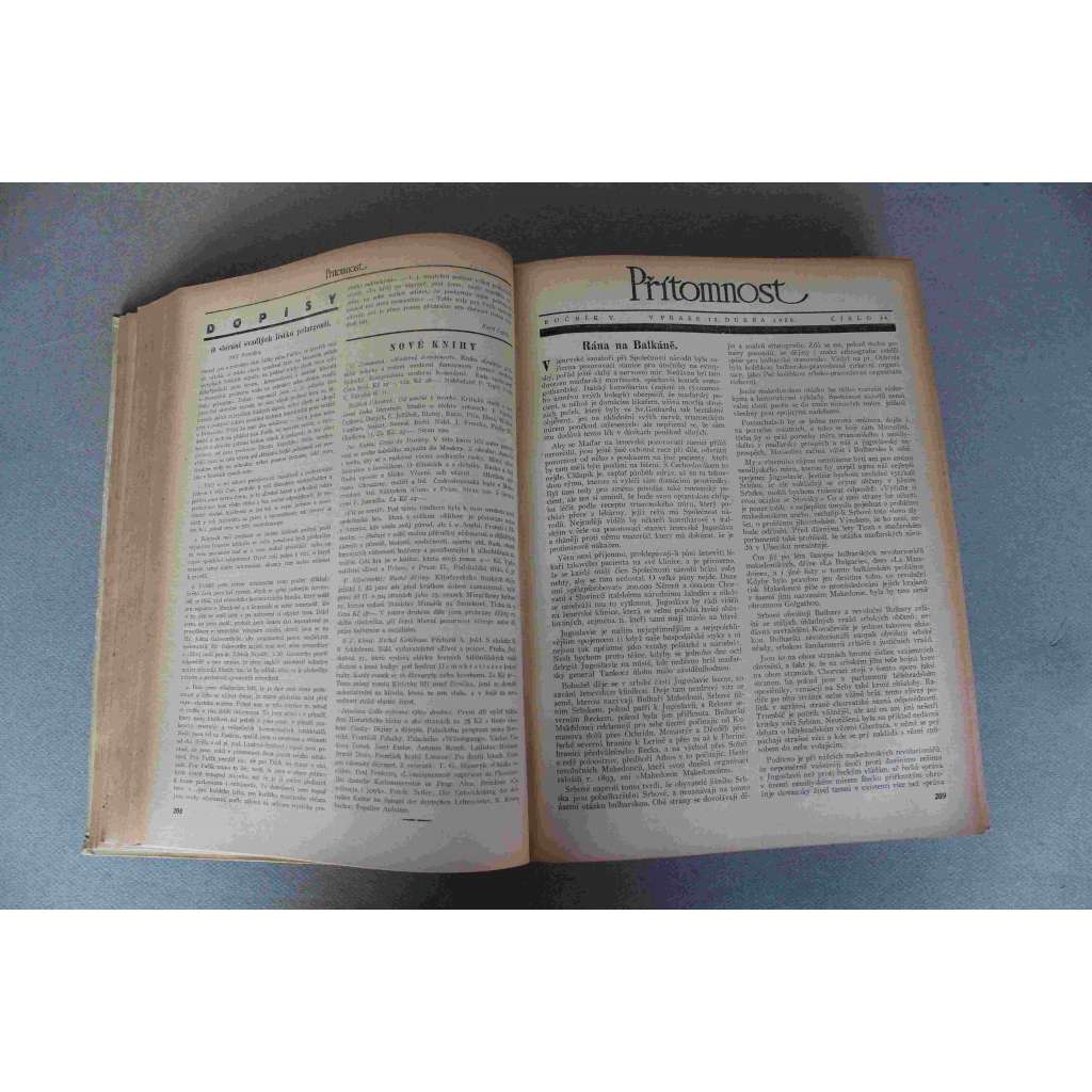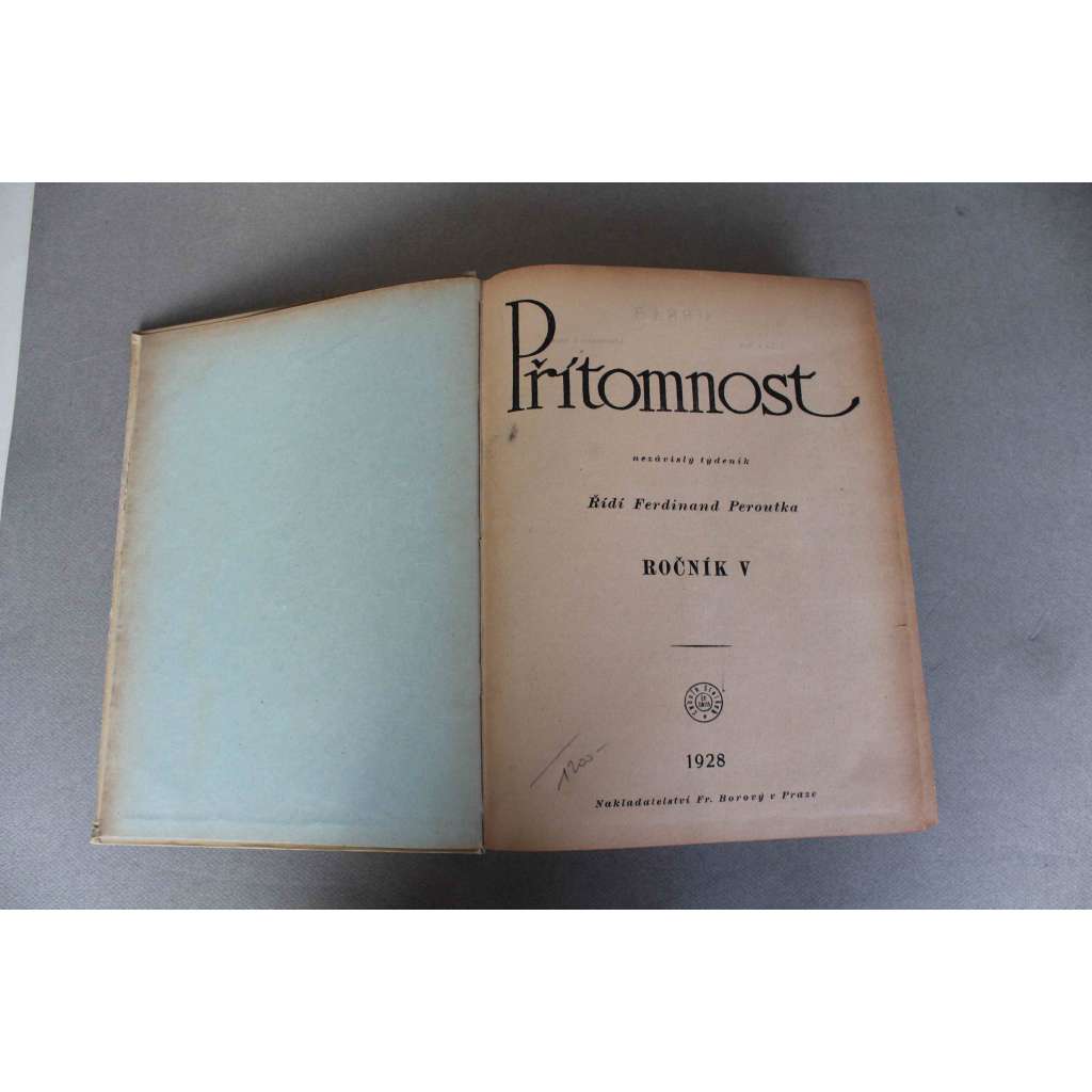 Přítomnost 1928, roč. V. (časopis, týdeník, první republika, mj. K. Čapek - Co se stranou práce?, B. Martinů - O současné hudbě; F. Peroutka - Náš Cicero, Problém Hodža; J. Hejda - Komu patří ČSR průmysl?, Umění prodati)