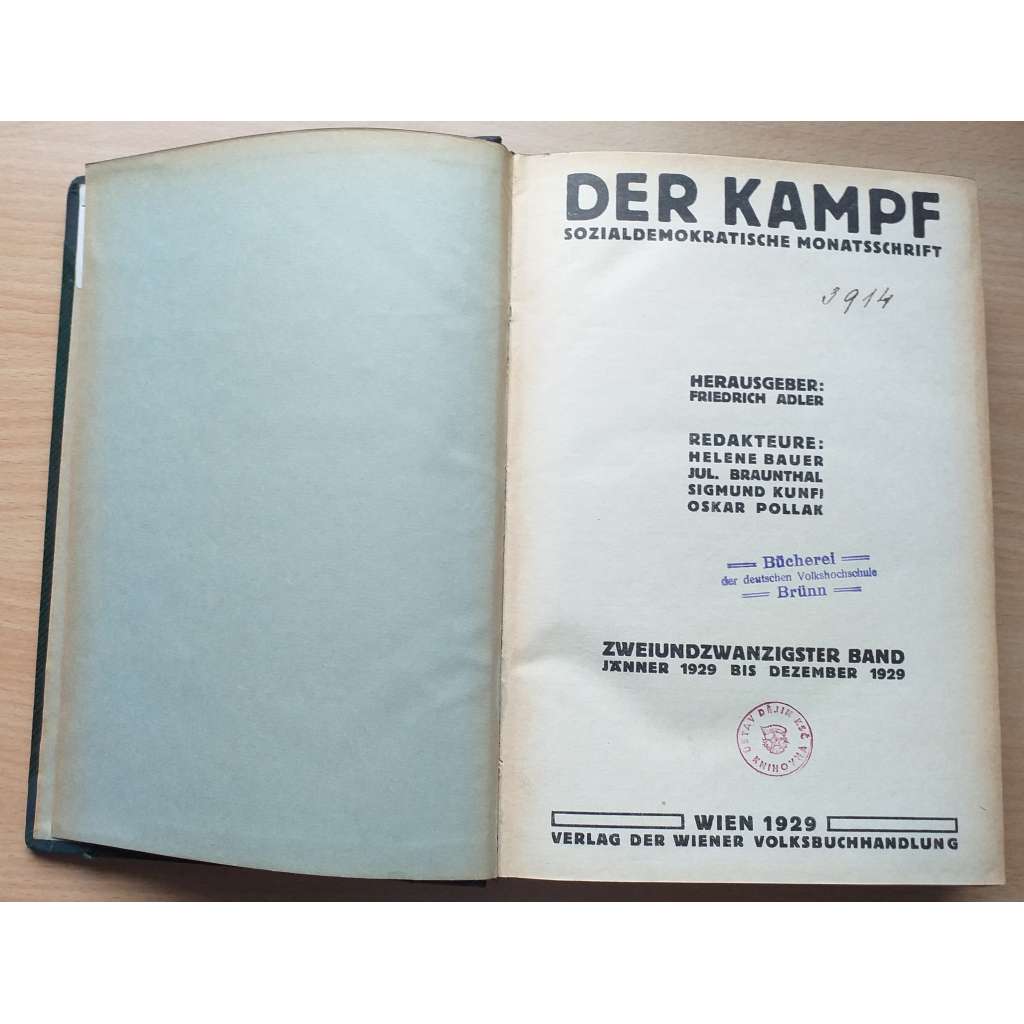 Der Kampf. Sozialdemokratishe Monatsschrift; 22. Band, Jänner 1929 bis Dezember 1929, Nr. 1-12 [sociální demokracie]