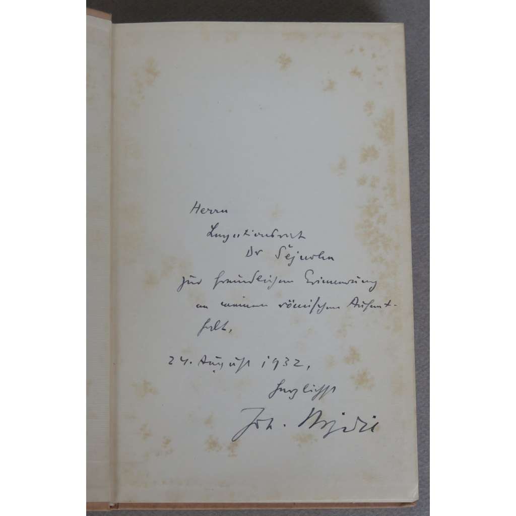 Na přední předsádce je autorovo podepsané věnování dr. Jaroslavu Švejnohovi (1889–1982), československému diplomatovi a tehdy legačnímu radovi a zástupci vyslance Chvalkovského v Itálii; věnování je datováno 1932.