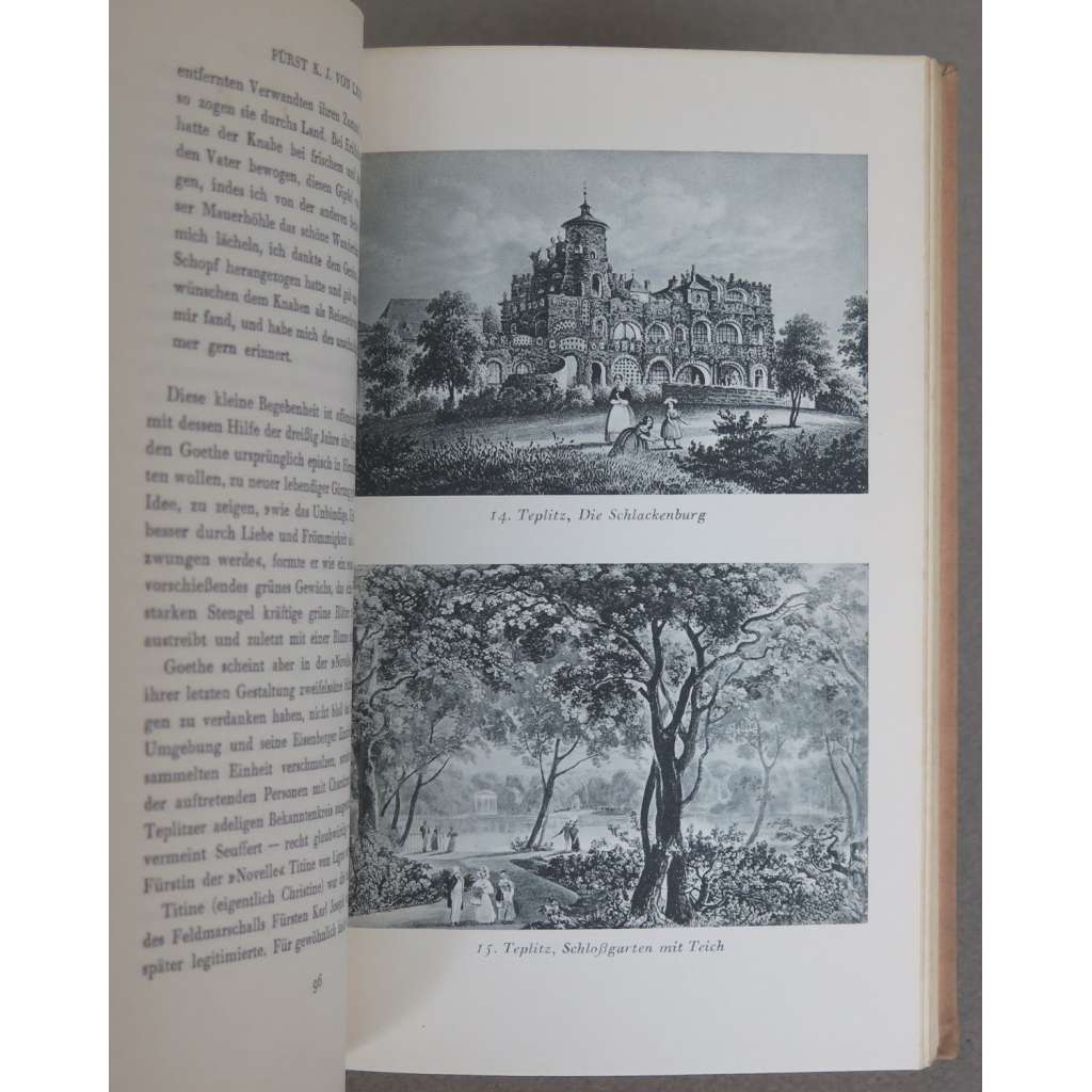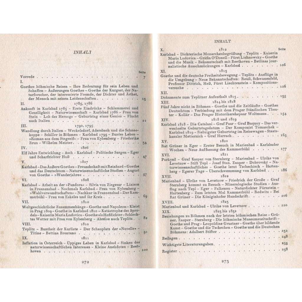 Kniha pražského německého spisovatele Johannese Urzidila (1896–1970) o Goethových pobytech v Čechách. Viz naskenovaný obsah. Ilustrováno 40 reprodukcemi na 28 stranách obrazové přílohy.