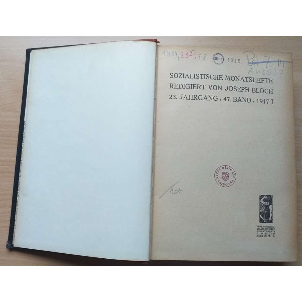 Sozialistische Monatshefte redigiert von Joseph Bloch; 23. Jahrg. 1917, 47. Band, 1. bis 8. Heft [německá sociální demokracie]