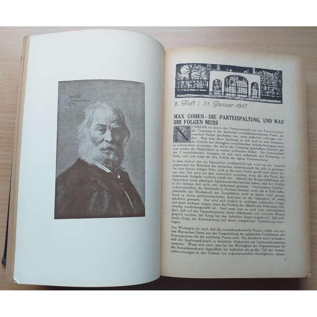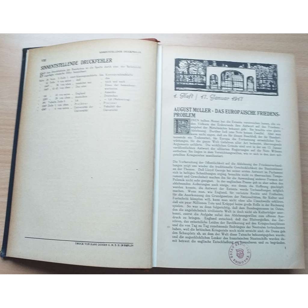 Vydání: Berlin: Verlag der Sozialistischen Monatshefte 1917. Pův. polokožená vazba se zlaceným titulem na hřbetu, zdobenou ořízkou a předsádkou, na předsádce s malým štítkem knihkupectví, VIII+454 stran s černobílými obr., 4° (16 x 24 cm)