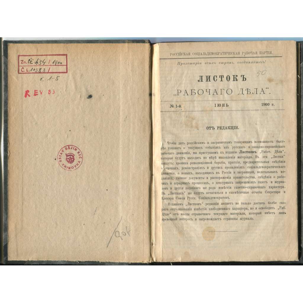 Listok "rabochago dela"?; No. 1-5i, 1900-1901 g. Листок "рабочаго дела"?; Nо. 1-5ы, 1900-1901 г. [sociální demokracie, Rusko, exil]