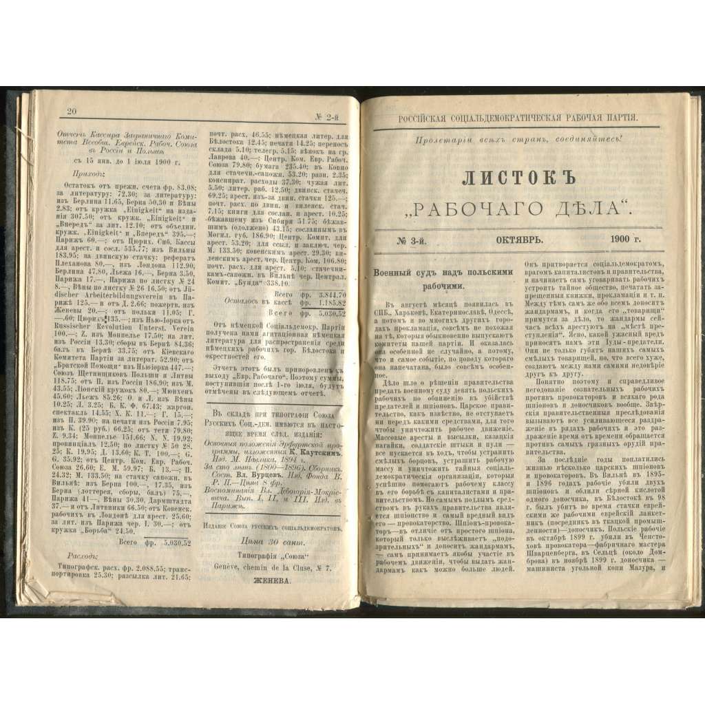 Vydání: Женева (Ženeva):Союз русских социалдеморатов 1900; 1901, knihovnická poloplátěná azba, 18; 20; 23; 24; 26 stran, 4° (14 x 25 cm)