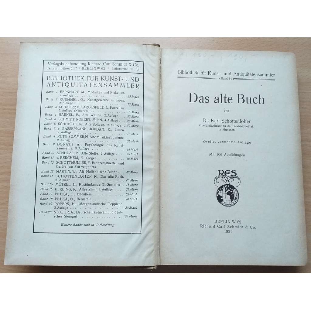 Edice Bibliothek für Kunst- und Antiquitätensammler; svazek 14, 2., rozšířené vydání, se 106 ilustracemi. Vývoj knihy, kniha v proměnách staletí, obchod s knihami, charakteristické rysy staré knihy