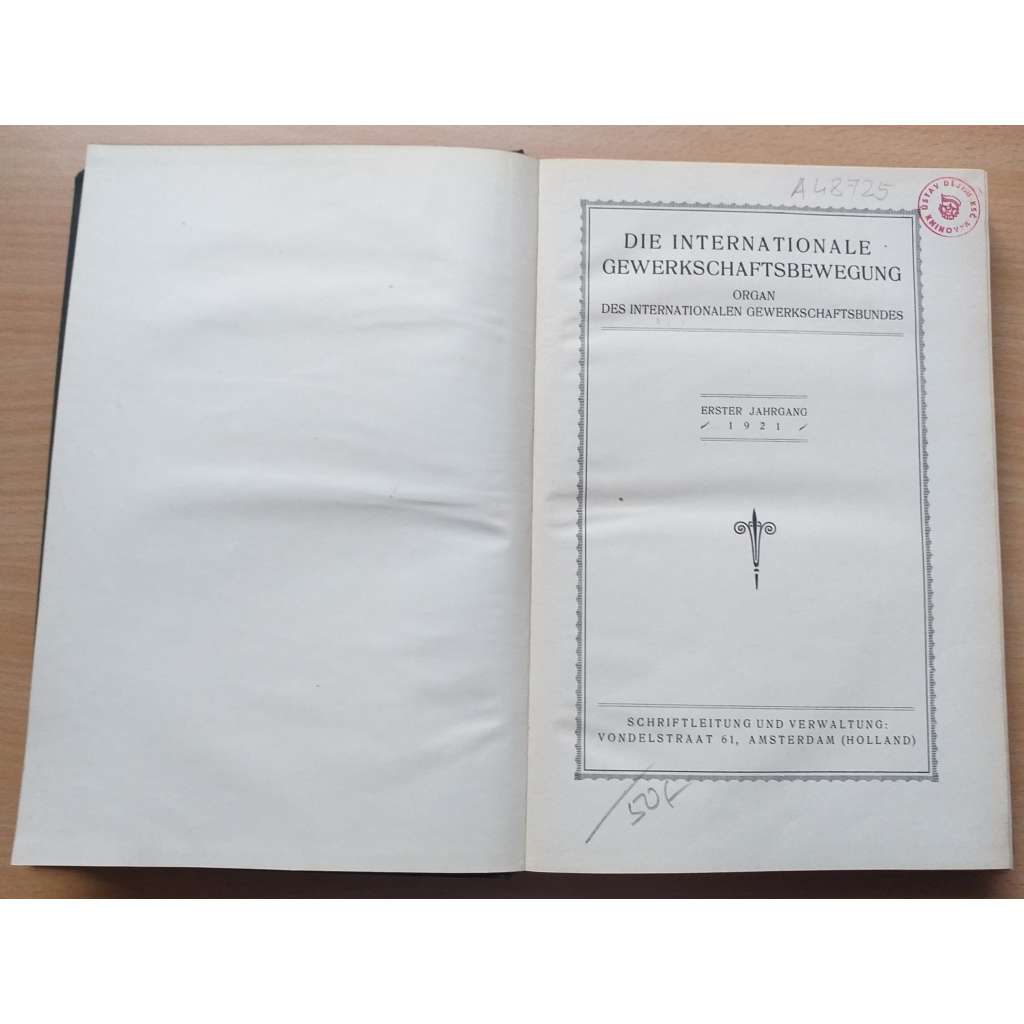 Vydání: Amsterdam: Internationaler Gewerkschaftsbund 1921. Plátěná vazba se zlaceným titulem na hřbetu a přední desce a zdobenou předsádkou, 229 stran s černobílými obr., 4° (17,5 x 26 cm)