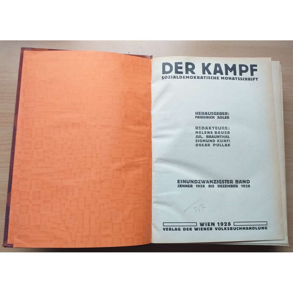 Der Kampf. Sozialdemokratische Monatsschrift; 21. Band, Jännner 1928 bis Dezember 1928, Nr. 1-12 [rakouská soc. demokracie]