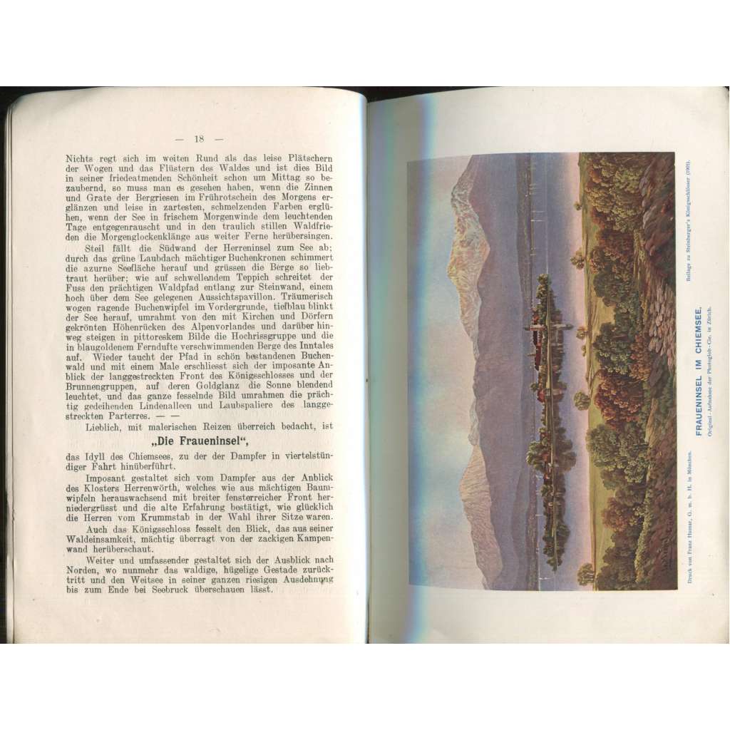 Vydání: Prien am Chiemsee: Verlag von F. Speiser 1906, pův. brož., 118 stran s četnými čb. ilustracemi a 1 barevnou, 8° (14 x 22 cm)