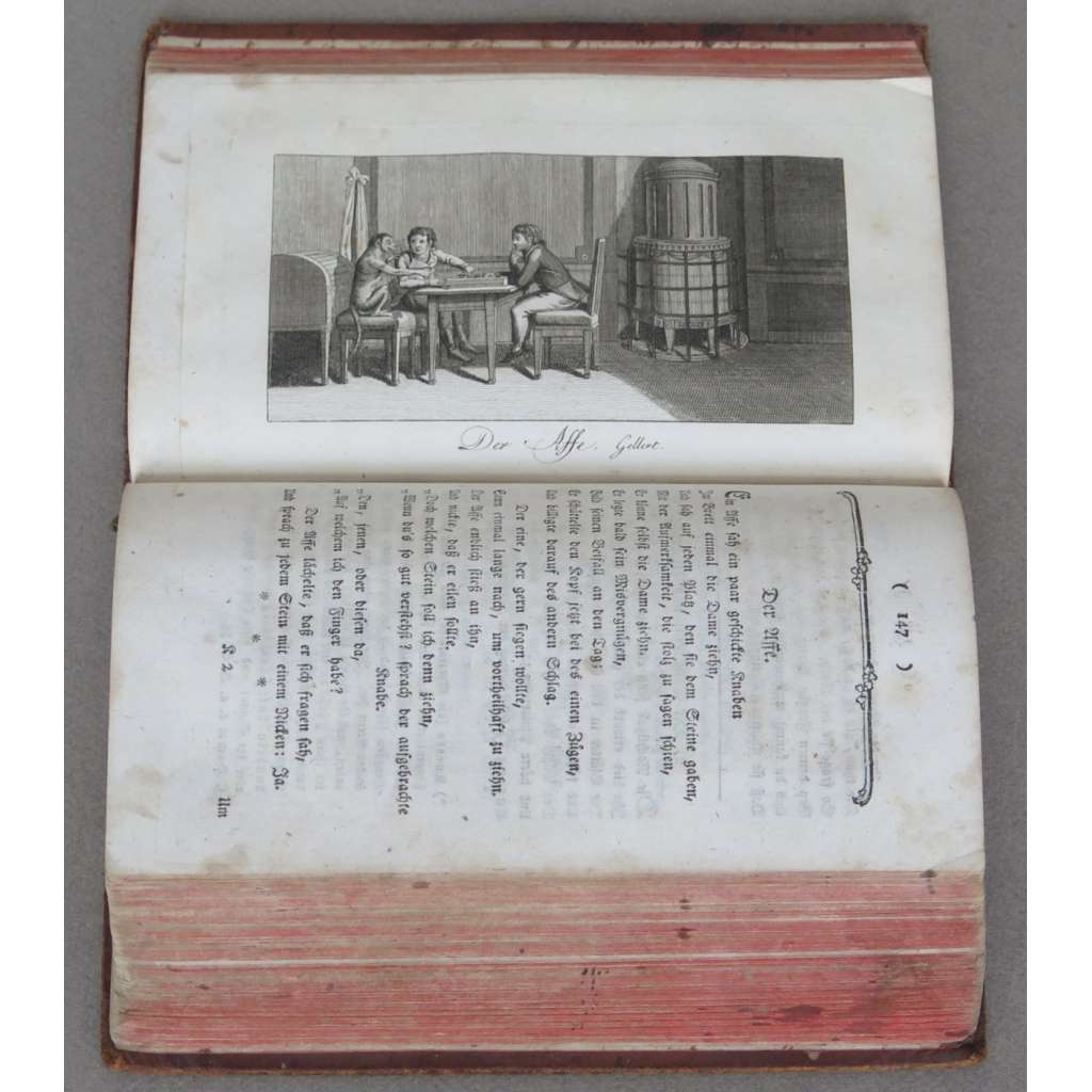 Dvě knihy svázané do jednoho svazku: 1) rozsáhlý výbor z bajek německých autorů ilustrovaný 12 mědiryty; 2) výbor z bajek, příběhů a jiných drobných děl francouzského spisovatele Louis-Françoise Jauffreta (1770–1840). Obojí určeno pro mládež. Kompletní výtisky.