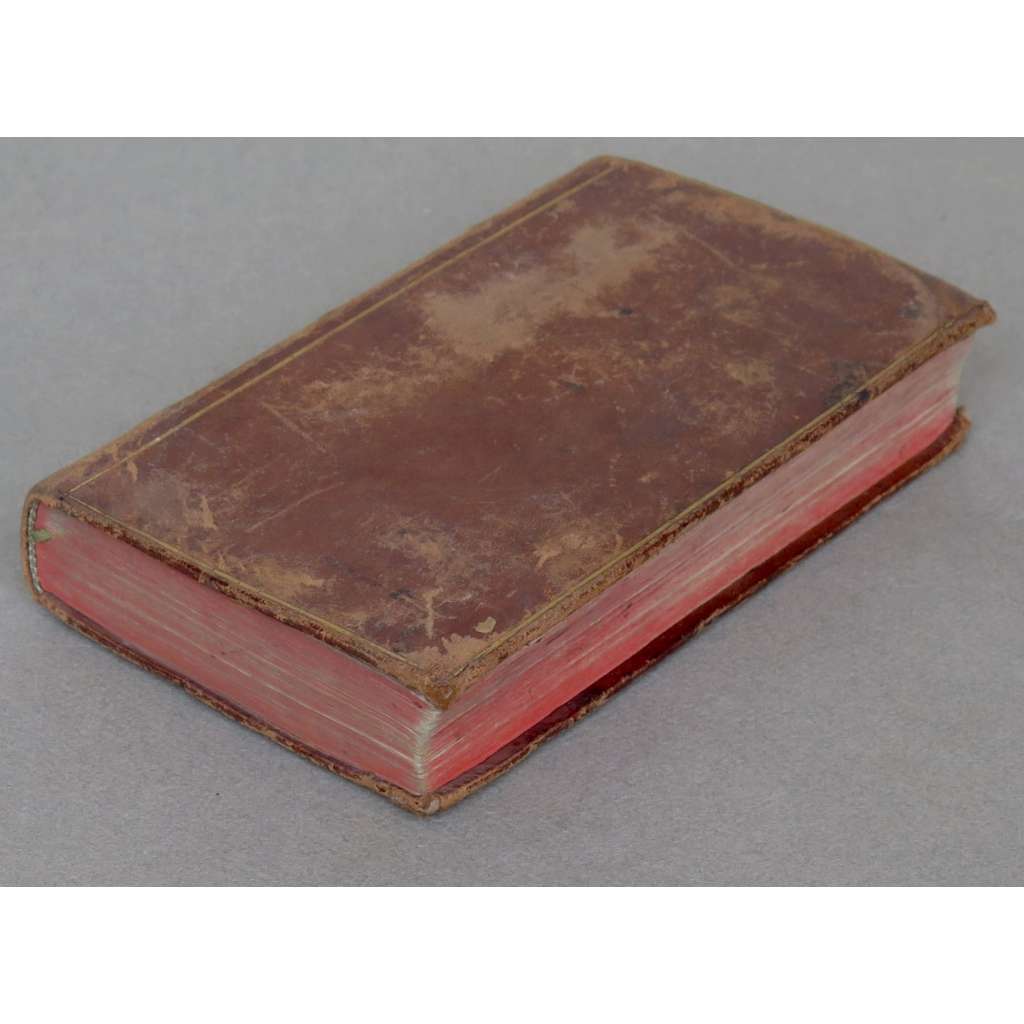 Stav knihy: Dobrý stav; kůže opotřebovaná a odřená, rohy desek trochu naražené, na předsádkách, několika stranách a ořízce jsou skvrnky od inkoustu, na stránkách a tabulích je občas pár nevýrazných skvrnek nebo drobných šmouh, rohy listů občas mírně ohnuté či s nepatrnou ztrátou, na pár listech jsou drobné stopy po činnosti larev/hmyzu (text nezasažen).