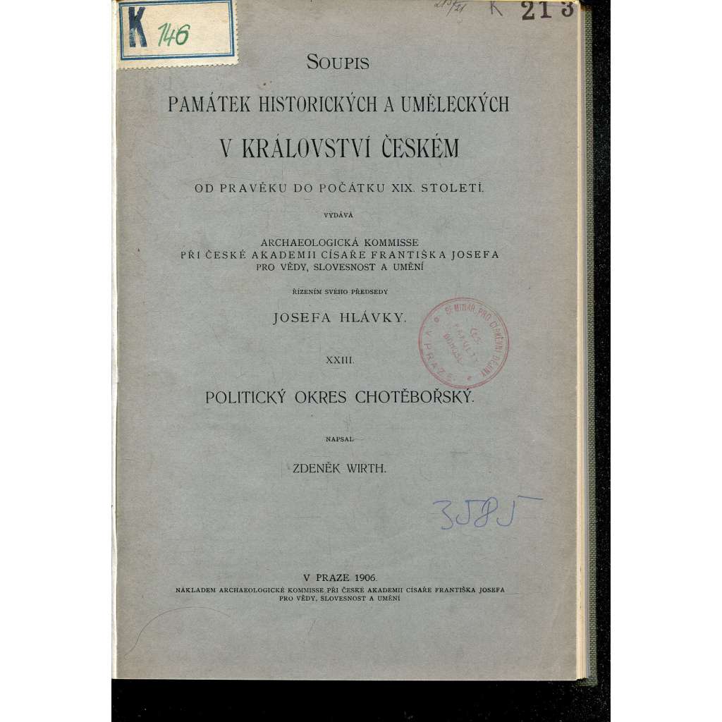 XXIII. svazek Soupisu památek historických a uměleckých v Království českém od pravěku do počátku XIX. století.