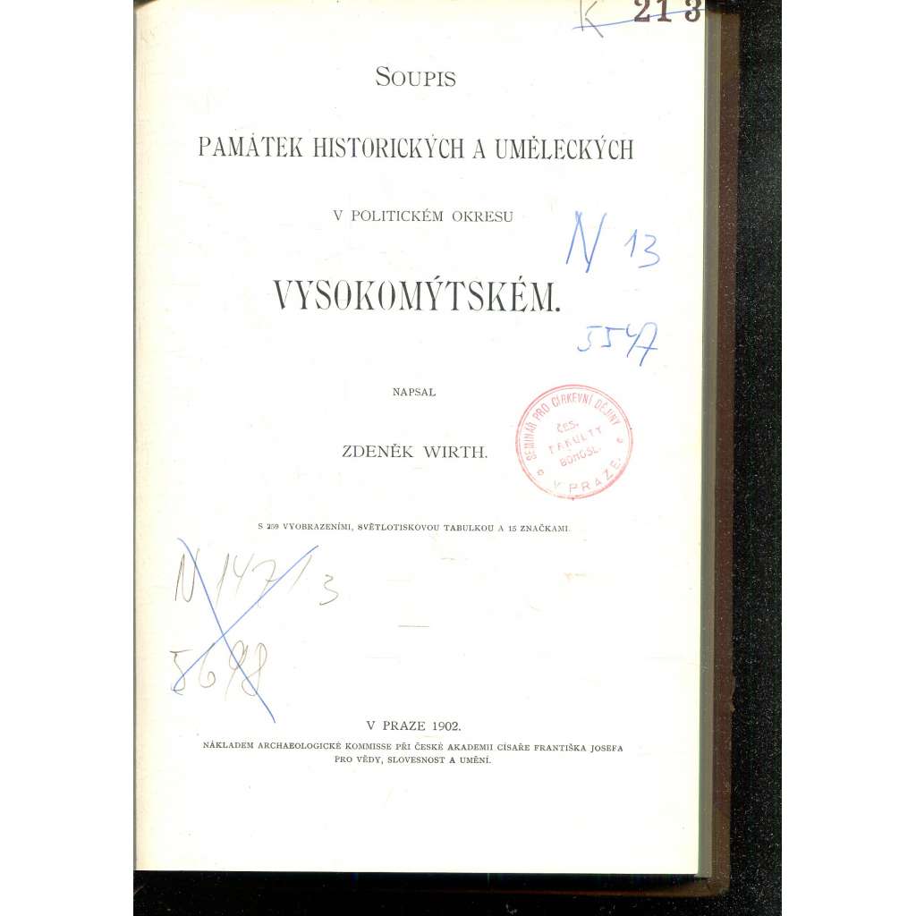 Soupis památek historických a uměleckých (Vysoké Mýto) v okresu vysokomýtském (okres vysokomýtský)[zámky, kostely, stavby, křesťanské církevní umění, starožitnosti, obrazy]