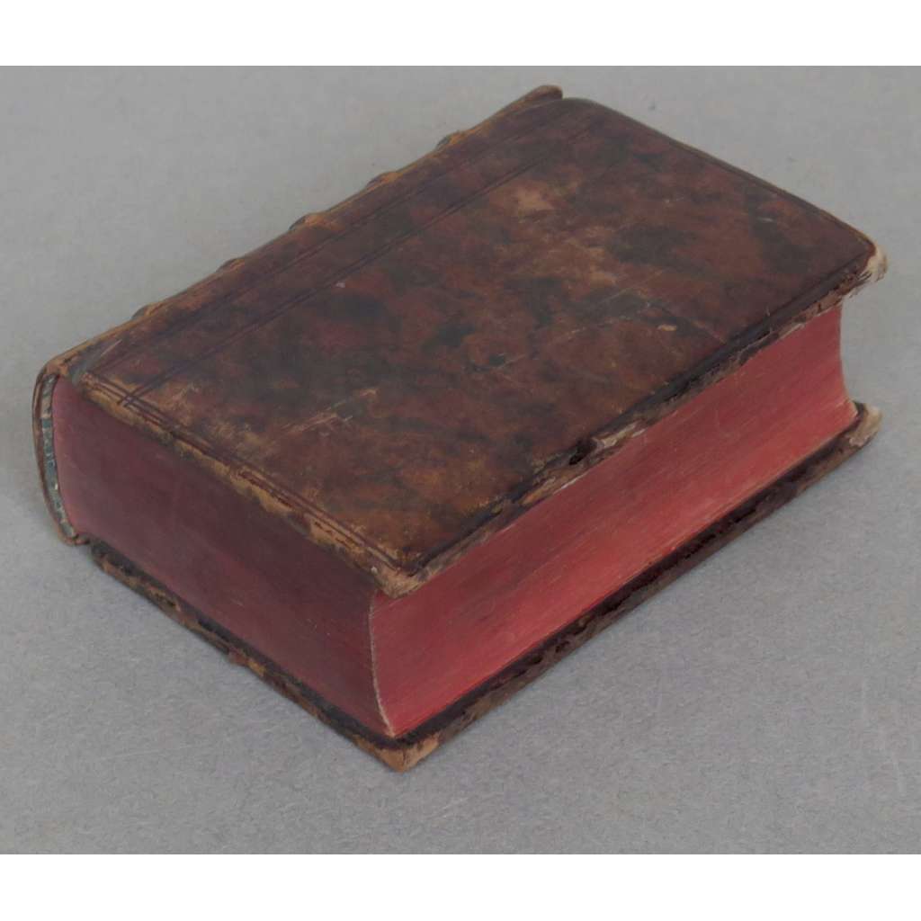 Stav knihy: Velmi dobrý stav; kůže poněkud opotřebovaná, dolní rohy desek naražené a odřené, horní ořízka mírně ztmavlá, na předsádkách je pár hnědých skvrnek od stáří, stránky zažloutlé, na pár stránkách je šmouha/otisk, na cca 50 stranách jsou pravděpodobně velmi stará podtržení perem, na cca 30 stranách je na okraji nevýrazná, vybledlá skvrna od vody/vlhkosti, na titulní straně je nalepen štítek (asi zakrývající staré vlastnické razítko).