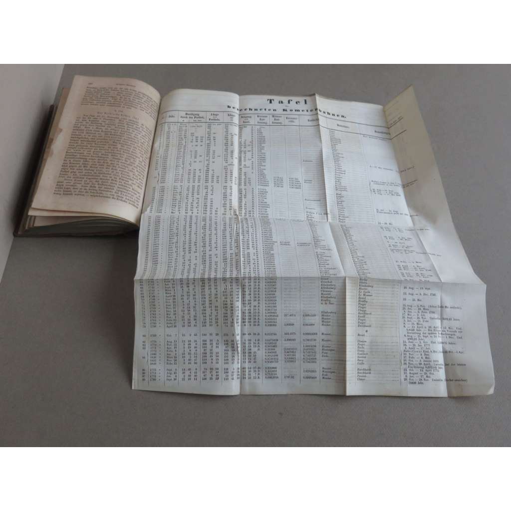 Vydání: Berlin: Verlag von Carl Heymann 1852, celoplátěná vazba s titulem na hřbetu barevná ořízka, XIV+625 stran (S. 211-226 chybí) + 32 str. (dodatků) a 16 str. (výkladů), 20 skládaných tabulí a tabulkou k drahám komet, 8° (13,5 x 20,5 cm)