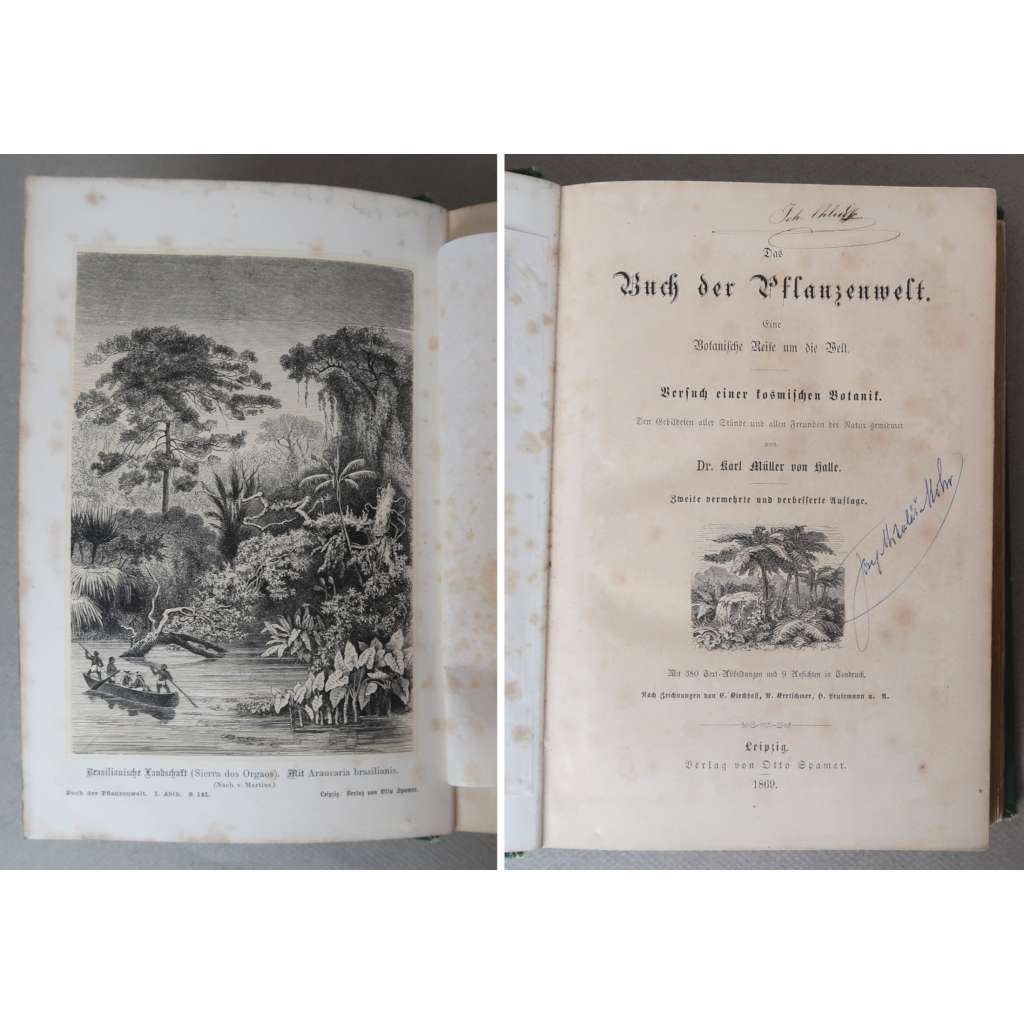 Stav knihy: Celkově vzhledem ke stáří dobrý stav. Desky na rozích a hranách trochu odřené, hřbet na obou okrajích prasklý, vlastnické poznámky na titulní straně, vazba mezi str. 336/337 trochu uvolněná, poznámky na str. 203, 318 a 319, některé stránky mírně ohmatané, papír vzhledem ke stáří trochu zahnědlý, některé stránky - hlavně ilustrace na tabulích - skvrnité, jinak uvnitř bez dalších poškození a pěkně zachovalá.