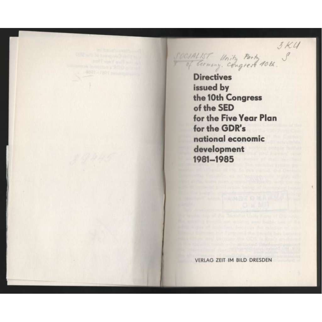 Directives issued by the 10th Congress of the SED for the Five Year Plan for the GDR´s national economic development 1981-1985 [NDR, sjezd SED]
