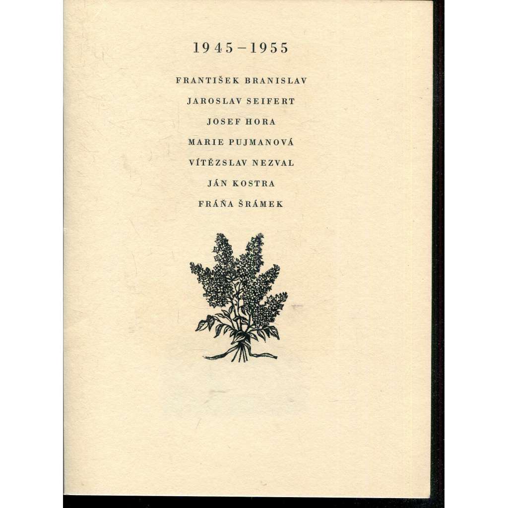 1945-1955 (dřevoryty Jindřich Mahelka) - F. Branislav, J. Seifert, J. Hora, M. Pujmanová, V. Nezval, J. Kostra, F. Šrámek
