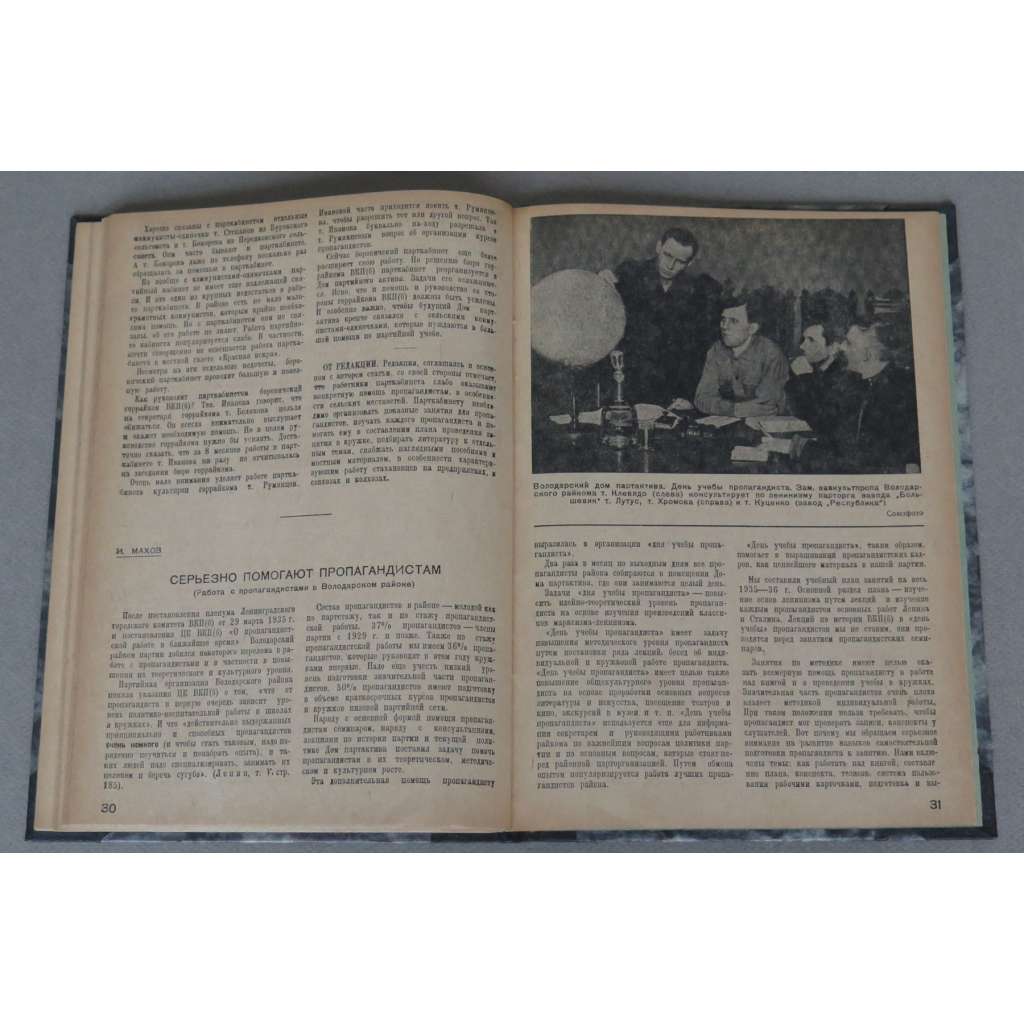Tři čísla sovětského časopis pro propagandisty z dob vrcholného stalinismu; ilustrováno fotografiemi.