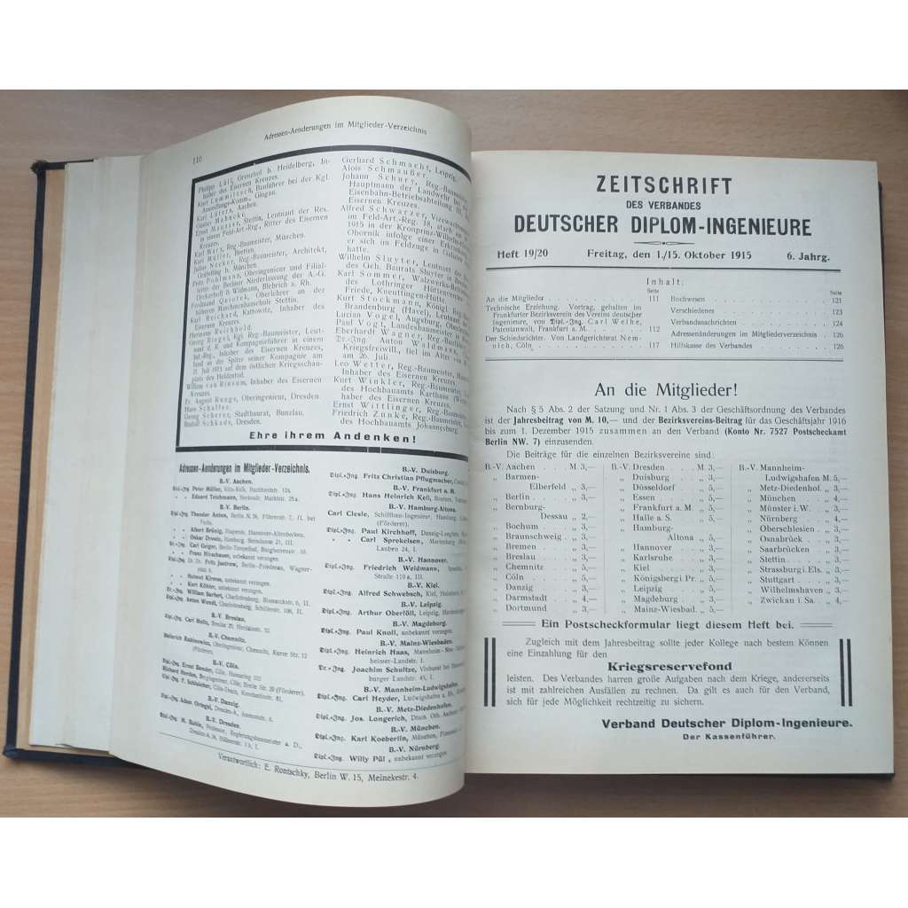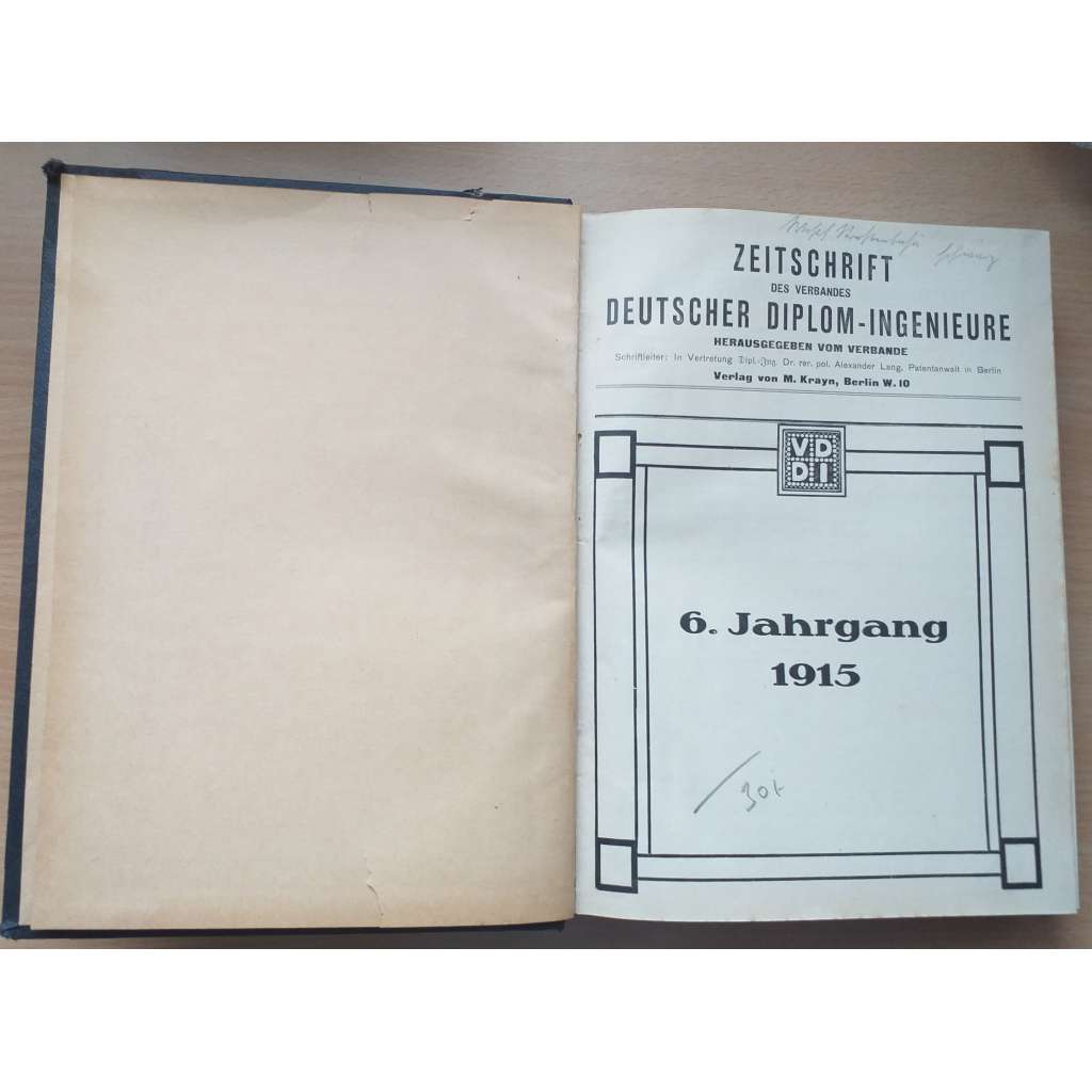 Zeitschrift des Verbandes Deutscher Diplom-Ingenieure; 6. Jahrg. 1915, 7. Jahrg. 1916, 8. Jahrg. 1917, 9. Jahrg. 1918 [Svaz německých inženýrů]
