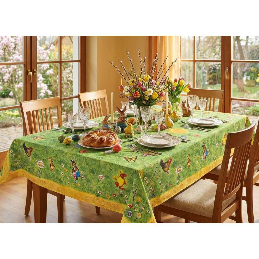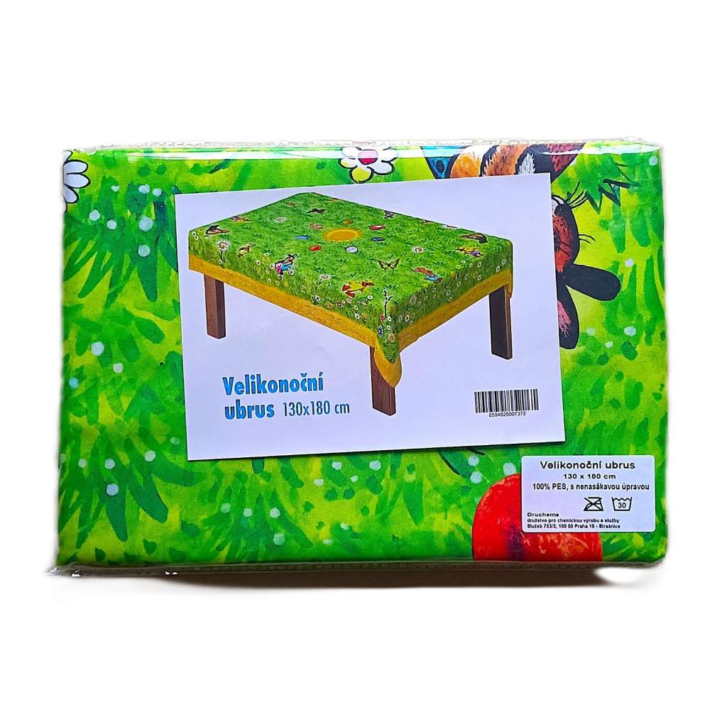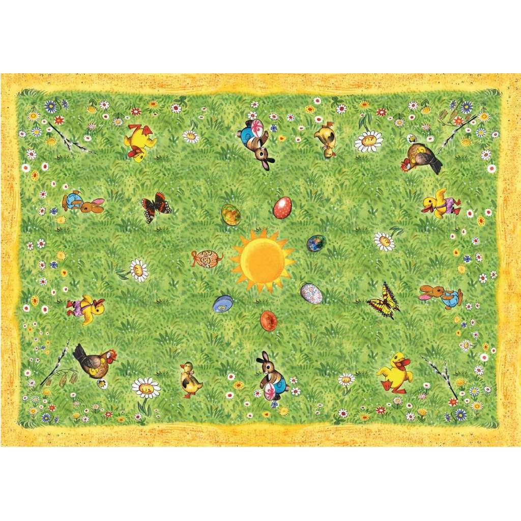 Velikonoční ubrus s ilustracemi z dětské knihy Velikonoční pohádka od Vojtěcha Kubašty.