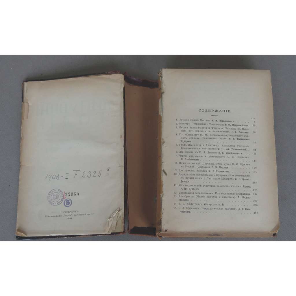 Významný ruský radikální historický časopis, který přímo navazoval na zakázaný časopis "Byloje"; dva fyzické svazky obsahují prvních šest čísel, vydaných od ledna do května/června 1908.