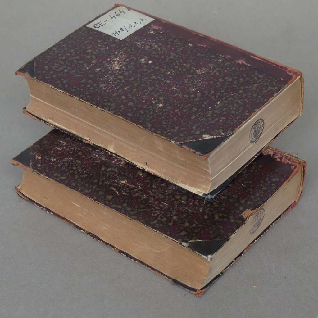 Dobová polokožená vazba; bývalý knihovní exemplář; žádné obálky nejsou vevázány.