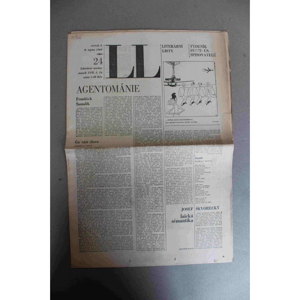 Literární listy 1968, roč. I. (týdeník, literatura, politika, mj. P. Pithart - Národní fronta nebo parlament?, R. Kalivoda - Demokratizace a kritické myšlení, Dva tisíce slov, M. Kundera - Malý a velký, I. KLíma - Předsjezdové obavy))