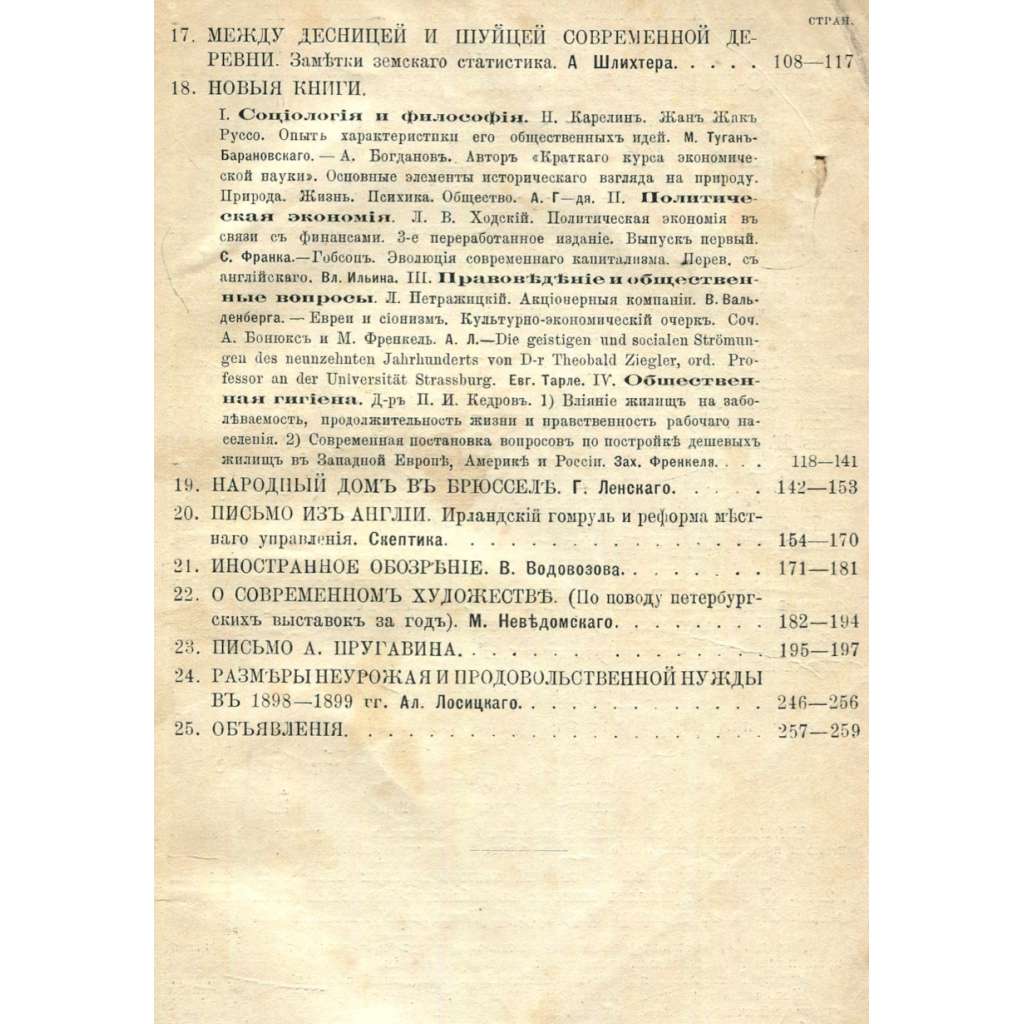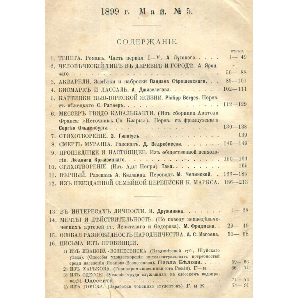 Poslední, květnové číslo významného ruského politického a literárního časopisu editovaného tzv. legálními marxisty Struvem a Tuganem-Baranovským. Viz naskenovaný obsah. Po tomto pátém čísle byl časopis úředně zastaven. Vzácně se vyskytující periodikum.