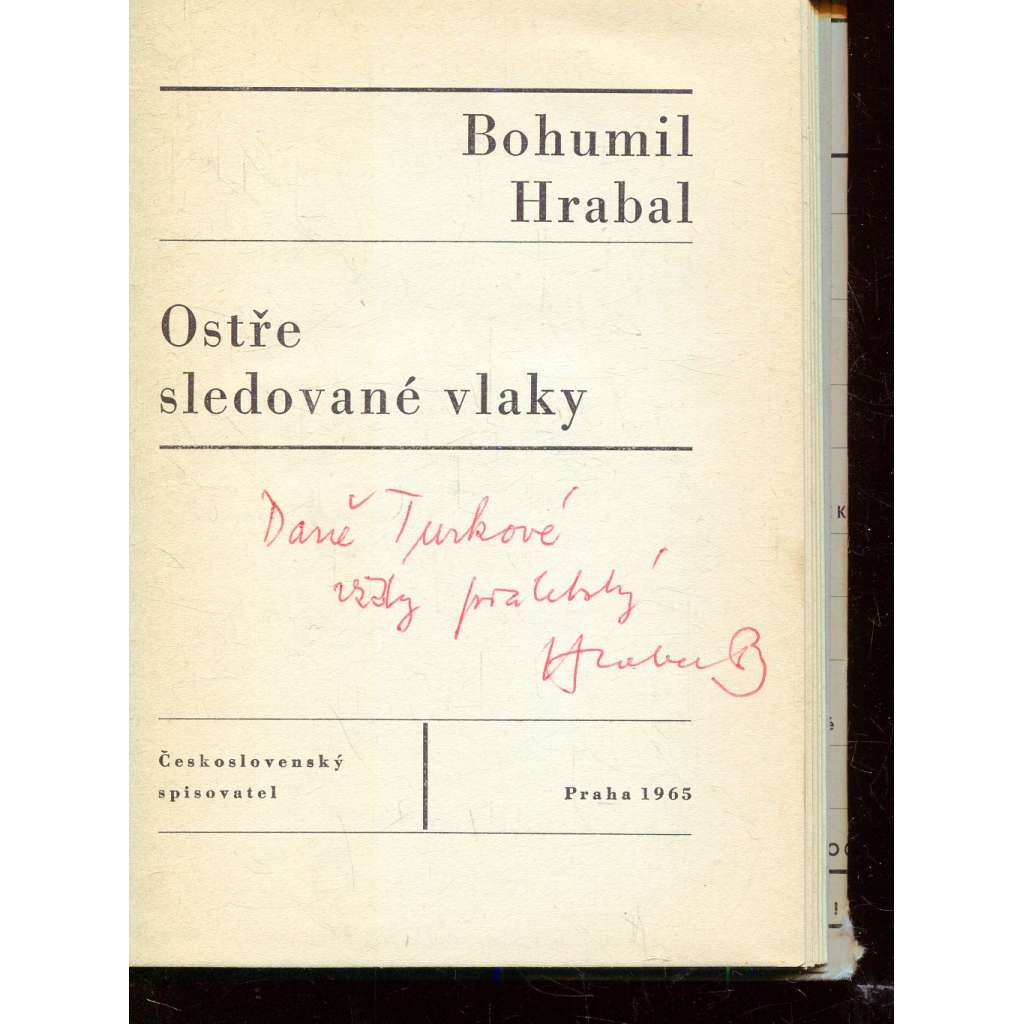Ostře sledované vlaky (podpis Bohumil Hrabal)