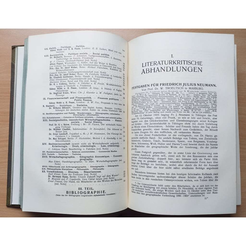 Bibliograficko-kritické periodikum, se seznamem literárněkritických pojednání, autorů jednotlivých recenzí, pojednání a jednotlivých recenzovaných knih a miscelanii z roku 1906. Obecná sociologie, sociální vědy, teoretická a praktická sociální ekonomie, politika, sociální politika, finanční věda a finanční politika, statistika, právo, obchodní vědy, filozofie, technika