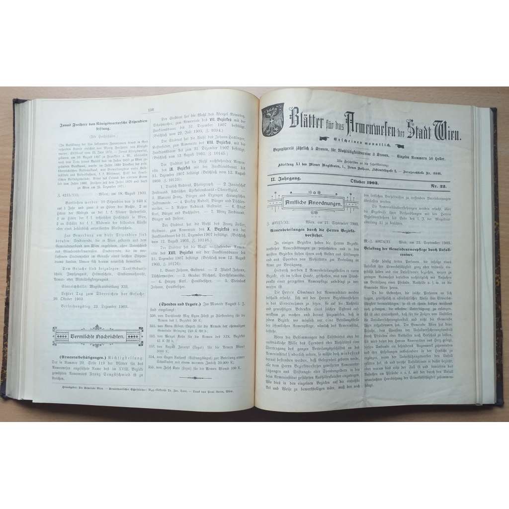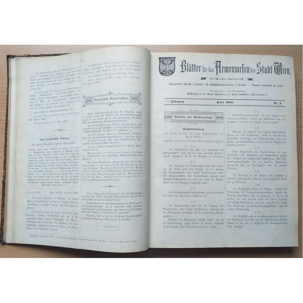 Blätter für das Armenwesen der Stadt Wien; I., II. u. III. Jahrg. Nr. 1-12, 1902, Nr. 13-24, 1903, Nr. 25-35, 1904 [péče o chudé]