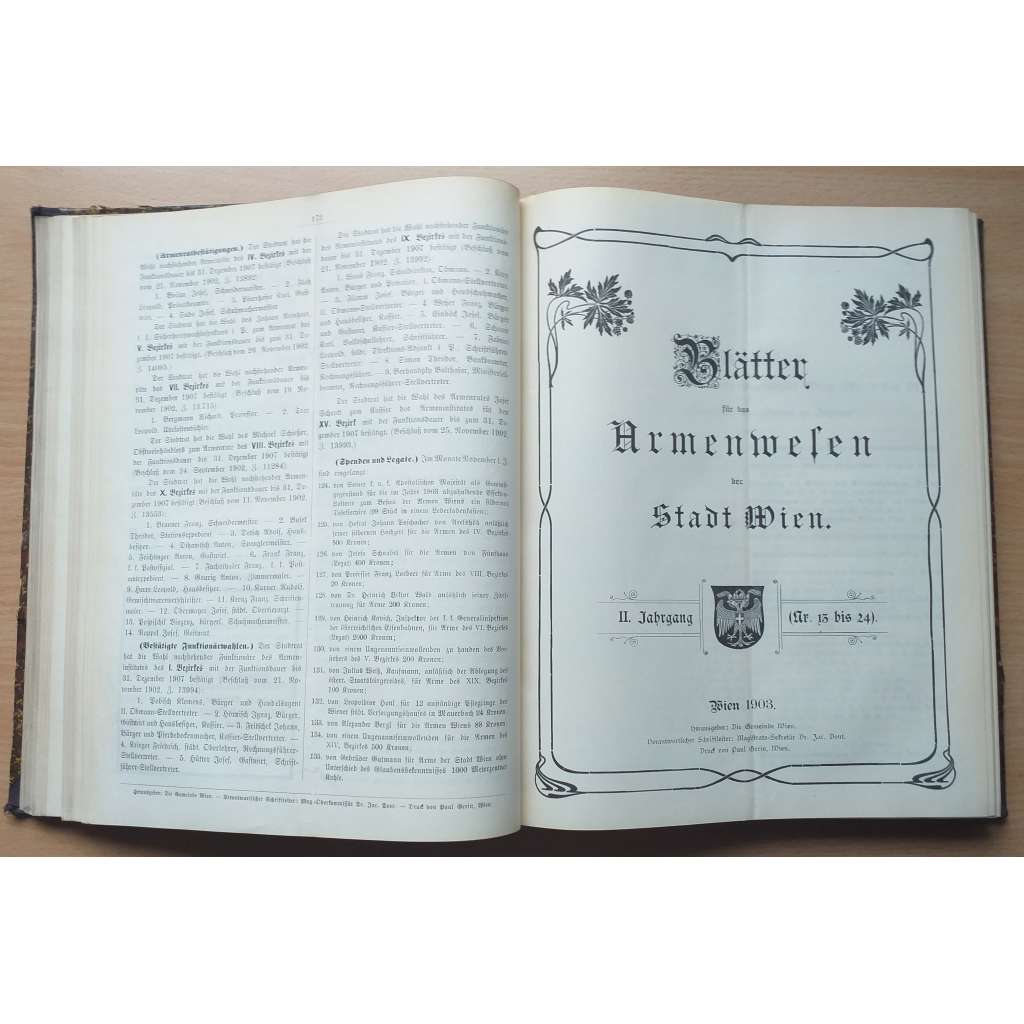 Vydání: Wien: Gemeinde Wien 1902-1904. Poloplátěná vazba se zlaceným titulem na hřbetu, XV+172+XIX+ 180+204 stran psaných frakturou, 2° (22 x 27 cm)