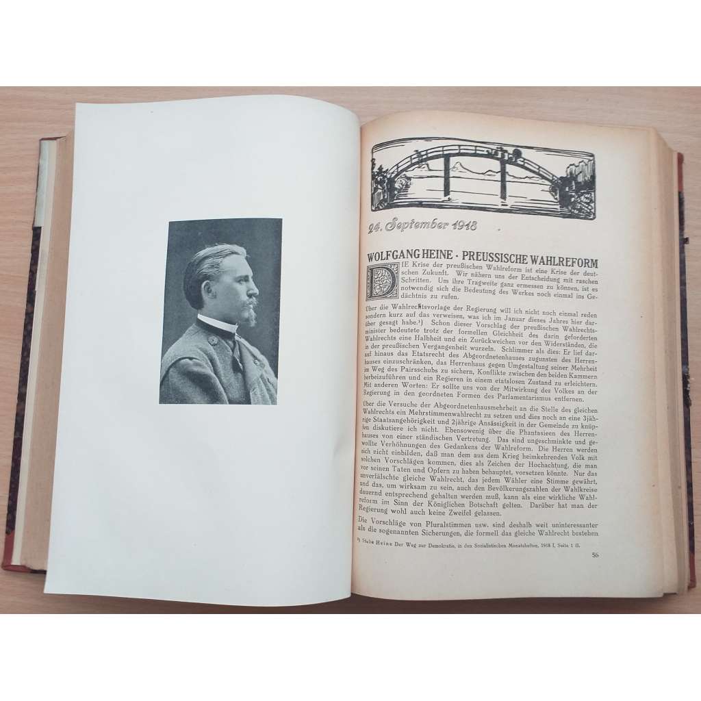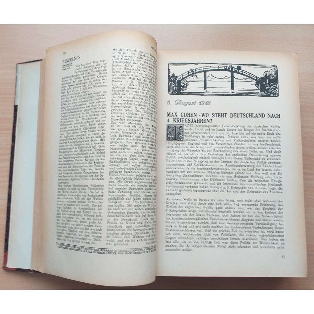 Vydání: Berlin: Verlag der Sozialistischen Monatshefte 1918. Poloplátěná vazba se zlaceným titulem na hřbetu, zdobenou ořízkou a ex libris na předsádce, strany 667-1240 s černobílými obr., 4° (17 x 24 cm)