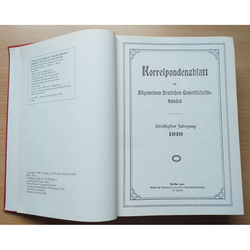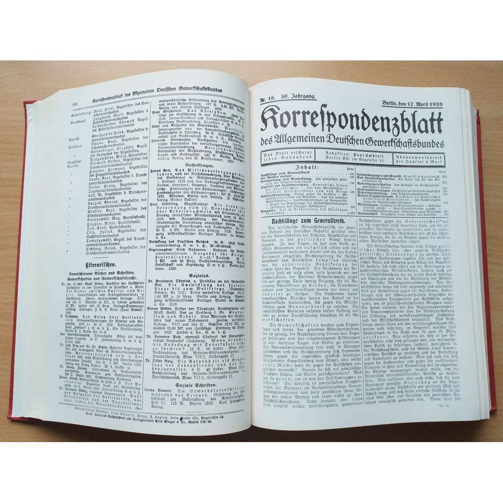 Korrespondenzblatt des Allgemeinen Deutschen Gewerkschaftsbundes; 30. Jahrgang 1920, Nr. 1-52 [německé odbory]