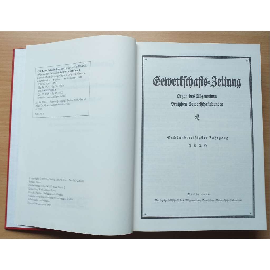 Gewerkschafts-Zeitung. Organ des Allgemeinen Deutschen Gewerkschaftsbundes; 36. Jahrg. 1926, Nr. 1-52 [německé odbory]