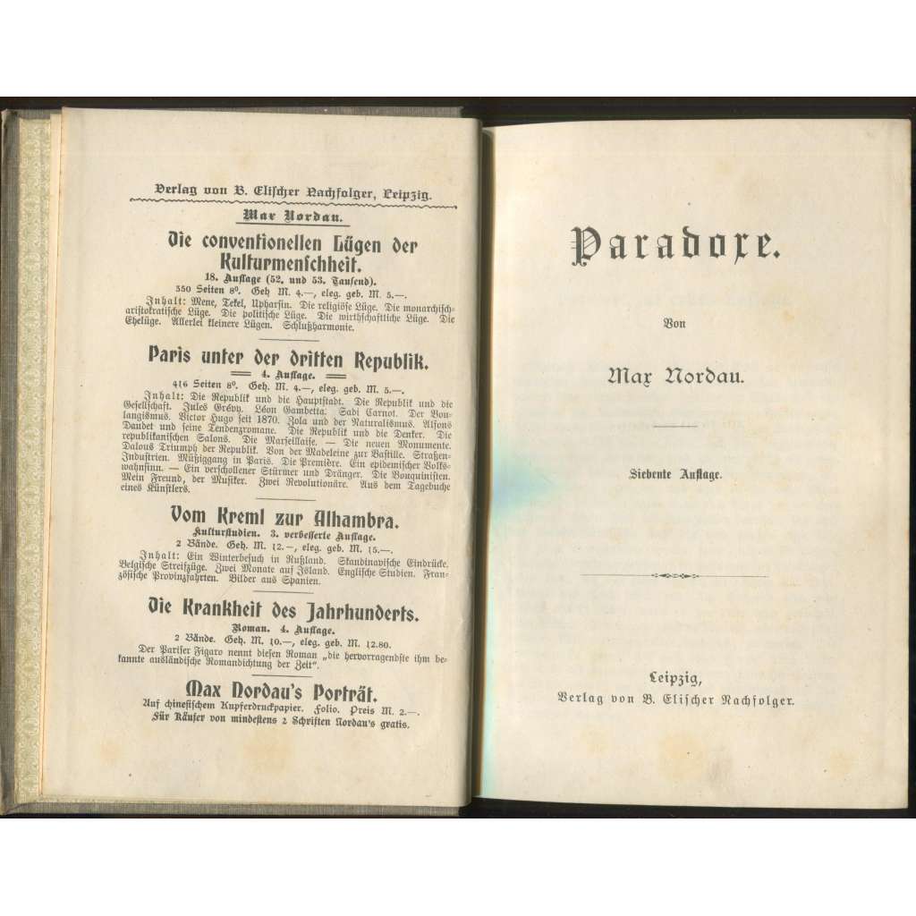 Vydání: Leipzig: Verlag von B. Elischer Nachfolger, pův. celoplátěná vazba s titulem na přední desce a hřbetu, zdobené předsádky, II+363 stran, 8° (14,5 x 20 cm)