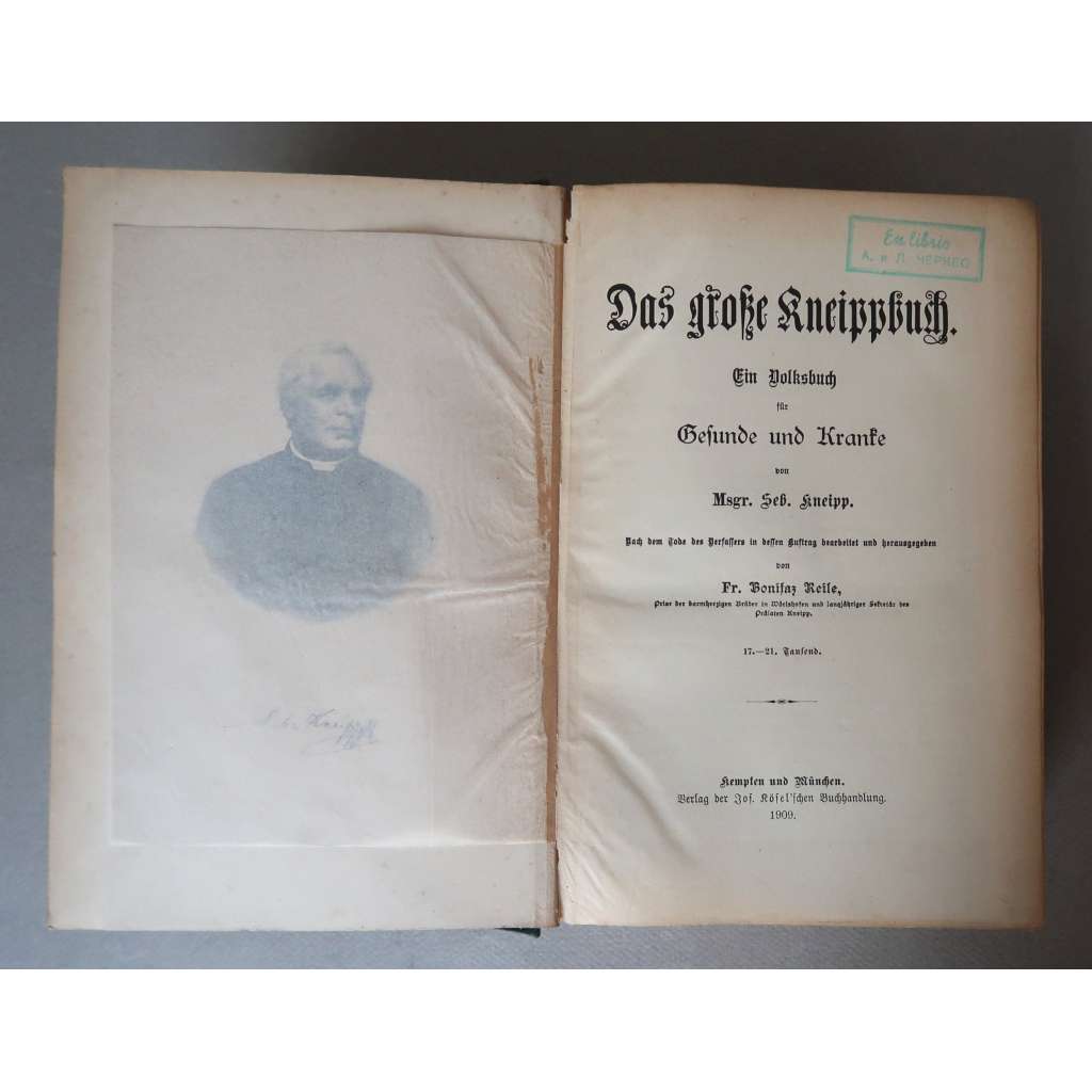 Celý název: Das große Kneippbuch. Ein Volkbuch für Gesunde und Kranke von Msgr. Seb. Kneipp. Nach dem Tode des Verfassers in dessen Auftrag bearbeitet und herausgegeben von Fr. Bonifaz Reile, Prior der barmhärzigen Brüder in Wörishofen und langjähriger Sekretär des Prälaten Kneipp