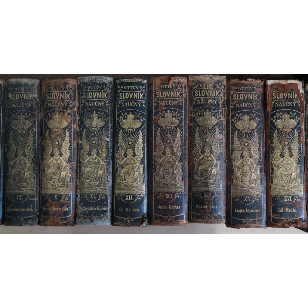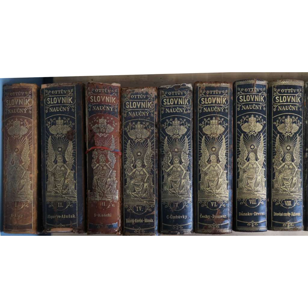 OTTŮV SLOVNÍK NAUČNÝ - KOMPLET 28 SVAZKŮ - základní řada - SLEVA - VAZBA KŮŽE (encyklopedie všech oborů - mj. historie, přírodní vědy, místopis, výkladová hesla)