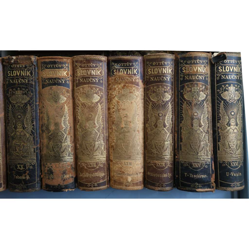 OTTŮV SLOVNÍK NAUČNÝ - 38 SVAZKŮ - 28 kompletní základní řada + 10 DODATKY - SLEVA - VAZBA KŮŽE - (encyklopedie všech oborů - mj. historie, přírodní vědy, místopis, výkladová hesla)