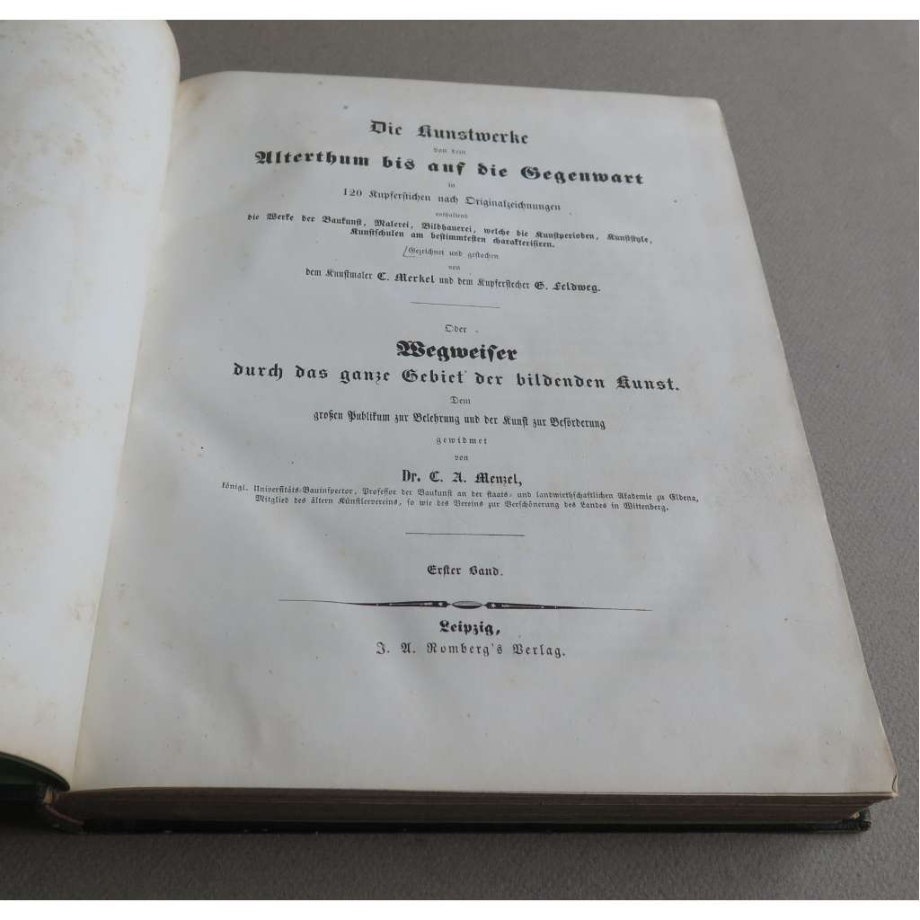 ... enthaltend die Werke der Baukunst, Malerei, Bildhauerei, welche die Kunstperioden, Kunststyle, Kunstschulen am bestimmtesten charakterisiren. Gezeichnet und gestochen von dem Kunstmaler C. Merkel und dem Kupferstecher G. Feldweg. Oder Wegweiser durch das ganze Gebiet der bildenden Kunst. Dem großen Publikum zur Belehrung und der Kunst zur Beförderung gewidmet. Erster und Zweiter Band