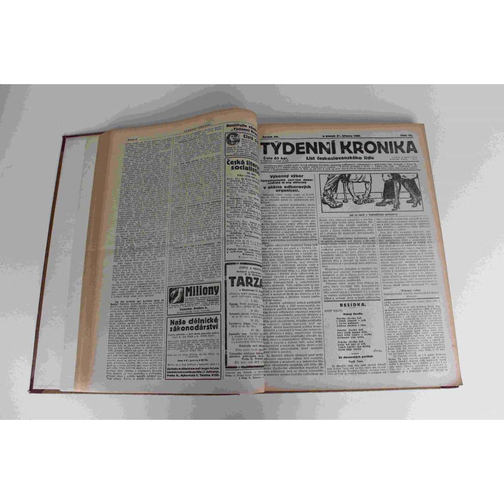 Týdenní kronika. List československého lidu 1920-1921, roč. VII (noviny, týdeník, první republika, mj. Vůdce národa [Masaryk], Arnošt Denis zemřel, Sčítání lidu a odluka církve od státu, Pryč od Říma, Letošní výročí 28. října)