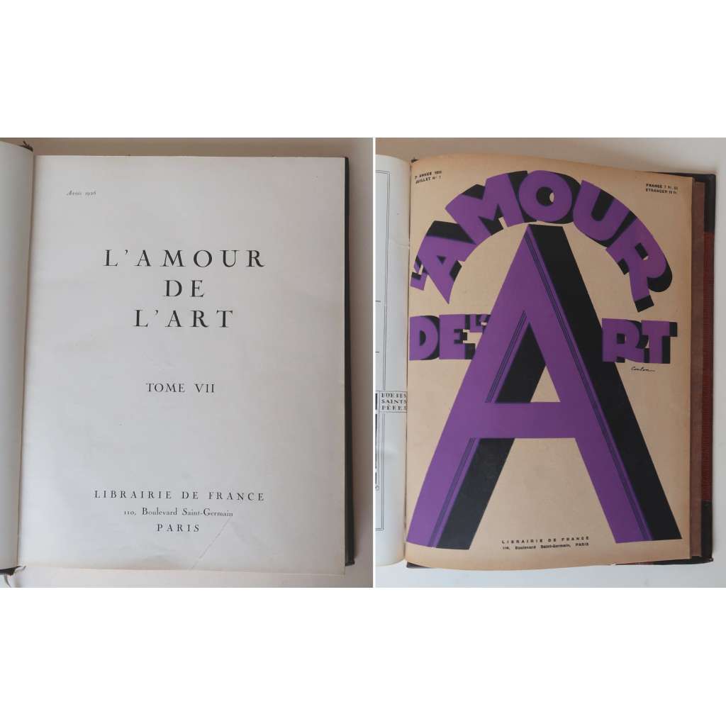 L'Amour de L'Art. Art ancien, art moderne, architecture, arts appliques; Tome VII, Anée 1926 [francouzský časopis "Láska k umění" 1926, moderní umění, dějiny umění, užité umění, architektura, vazba kůže - polokožená]