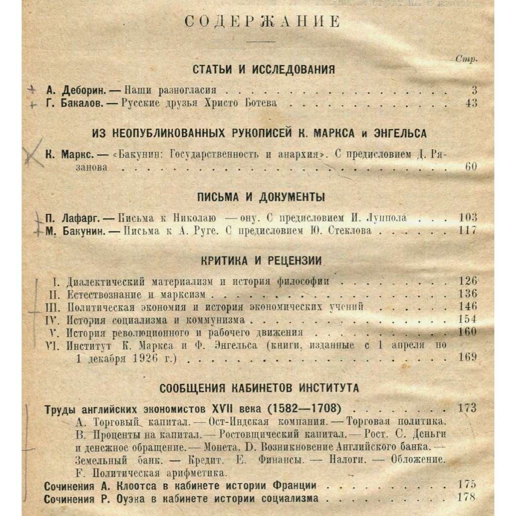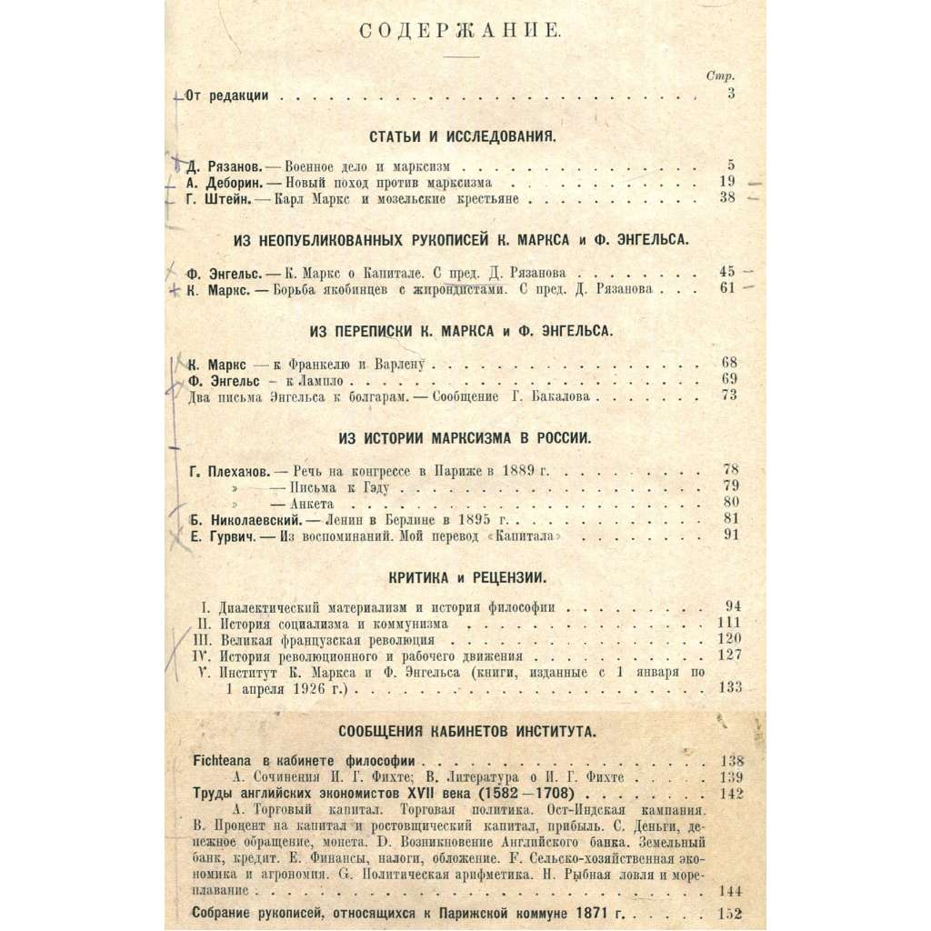 První dvě čísla významného teoreticko-historického časopisu vydávaného Marxovým a Engelsovým ústavem v Moskvě pod vedením věhlasného menševického učence Davida Rjazanova. Časopis se věnoval především dějinám marxismu. Viz naskenované obsahy. Celkem vyšlo mezi lety 1926 a 1930 jedenáct průběžně číslovaných čísel.