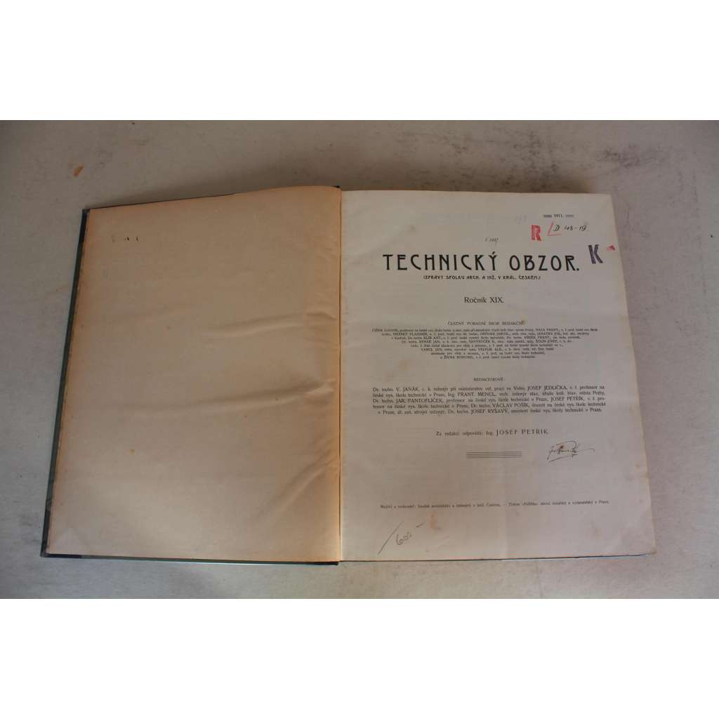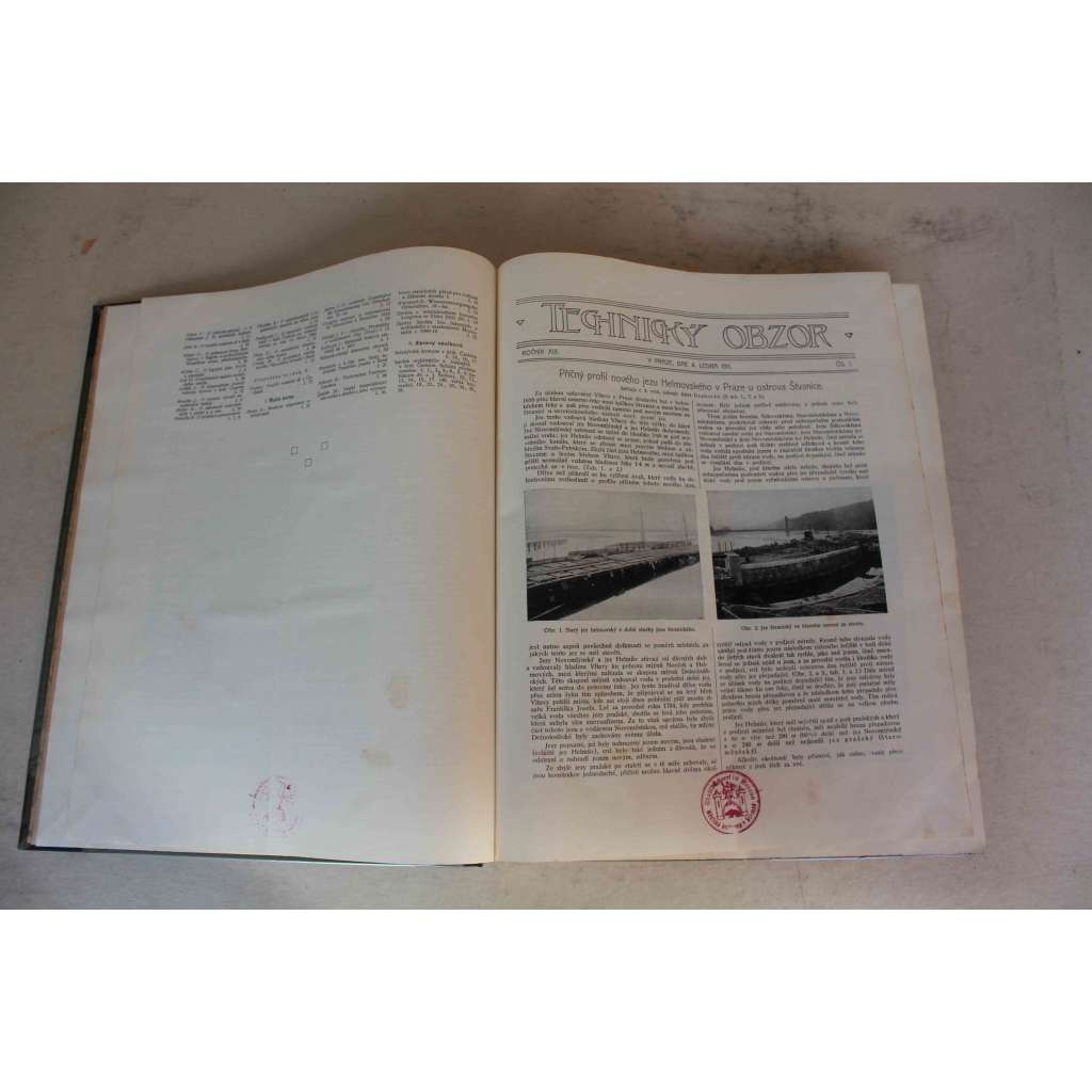 Technický obzor 1911, roč. XIX (časopis, technika, architektura, mj. Cukrovarnictví v r. 1910; Betonový most přes Sálici v Lendu; Rozvoj mostů klenutých; O hnilobě dřeva v pozemních stavbách; Helmovský jez Praha)