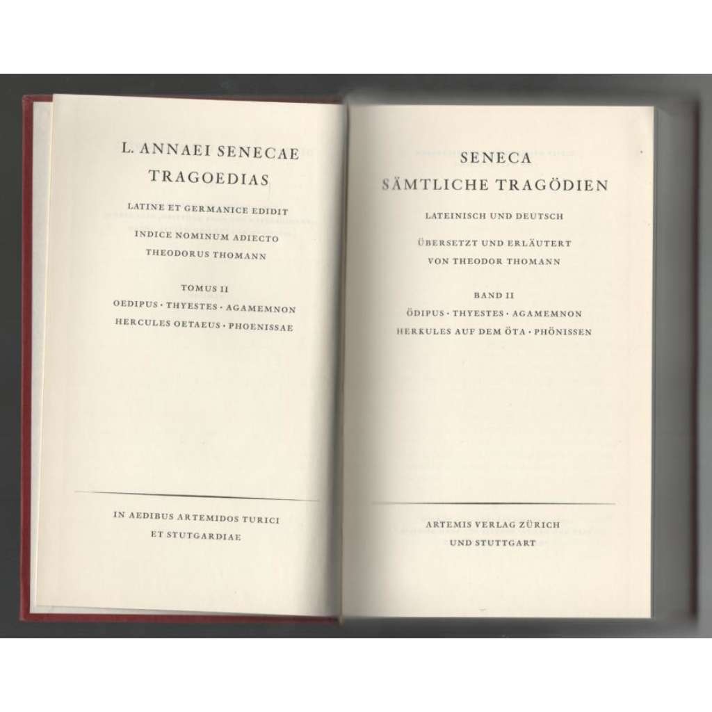 Edice Die Bibliothek der alten Welt, Römische Reihe. Latinsky a německy. Obsahuje Ödipus, Thyestes, Agamemnon, Herkules auf dem Öta, Phönissen