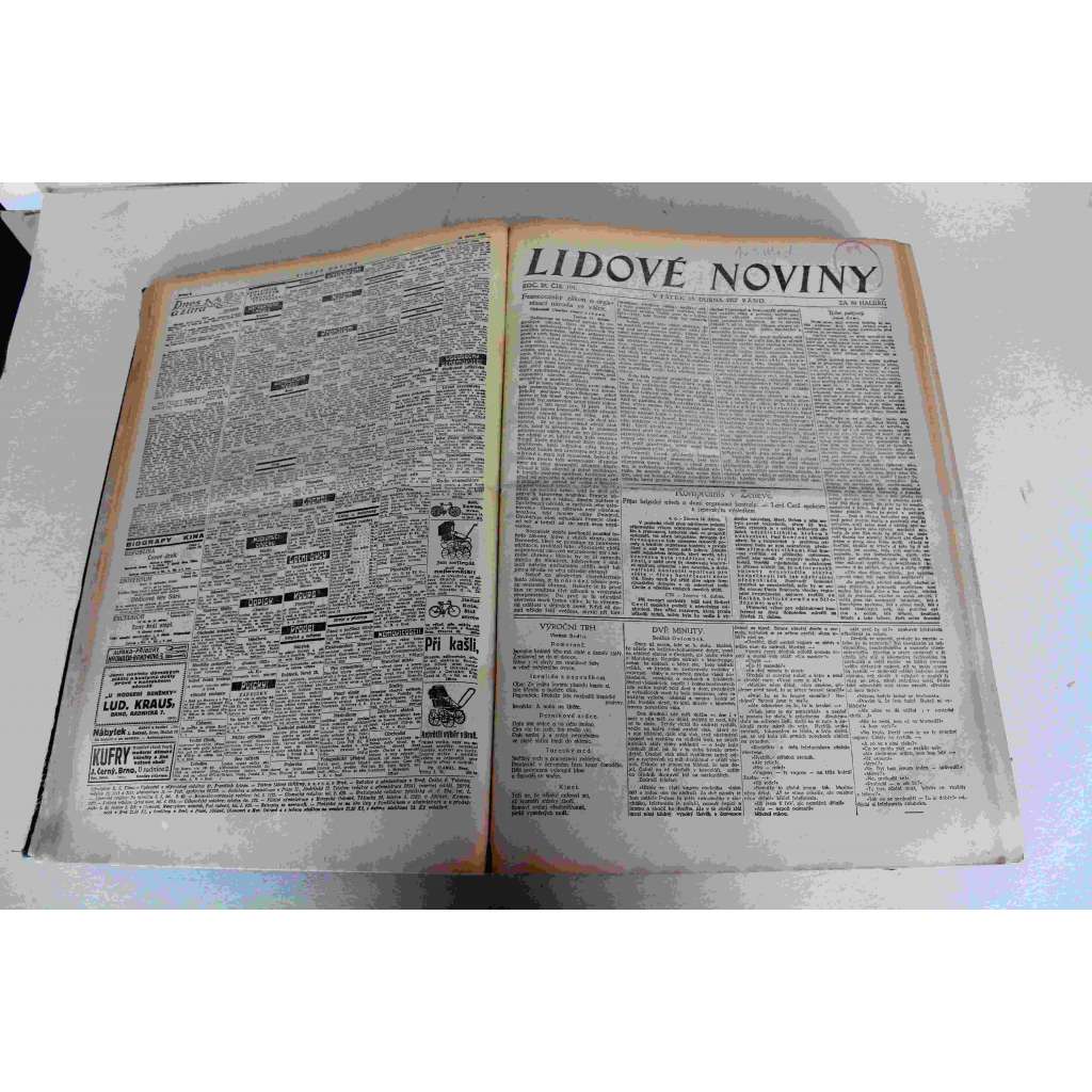Lidové noviny 1927, roč. 35 (duben-červen) (deník, první republika, mj. Výstava soudobé kultury v Brně, Československé reparace, Loupež Velká Byteč, Generál Josef Šnejdárek, K. Čapek - Minda čili o chovu psů, Nový let z Ameriky do Evropy)